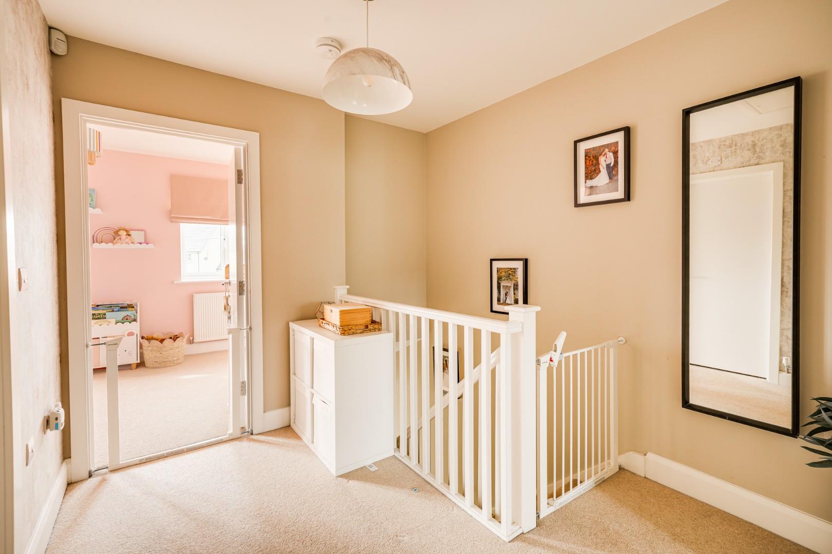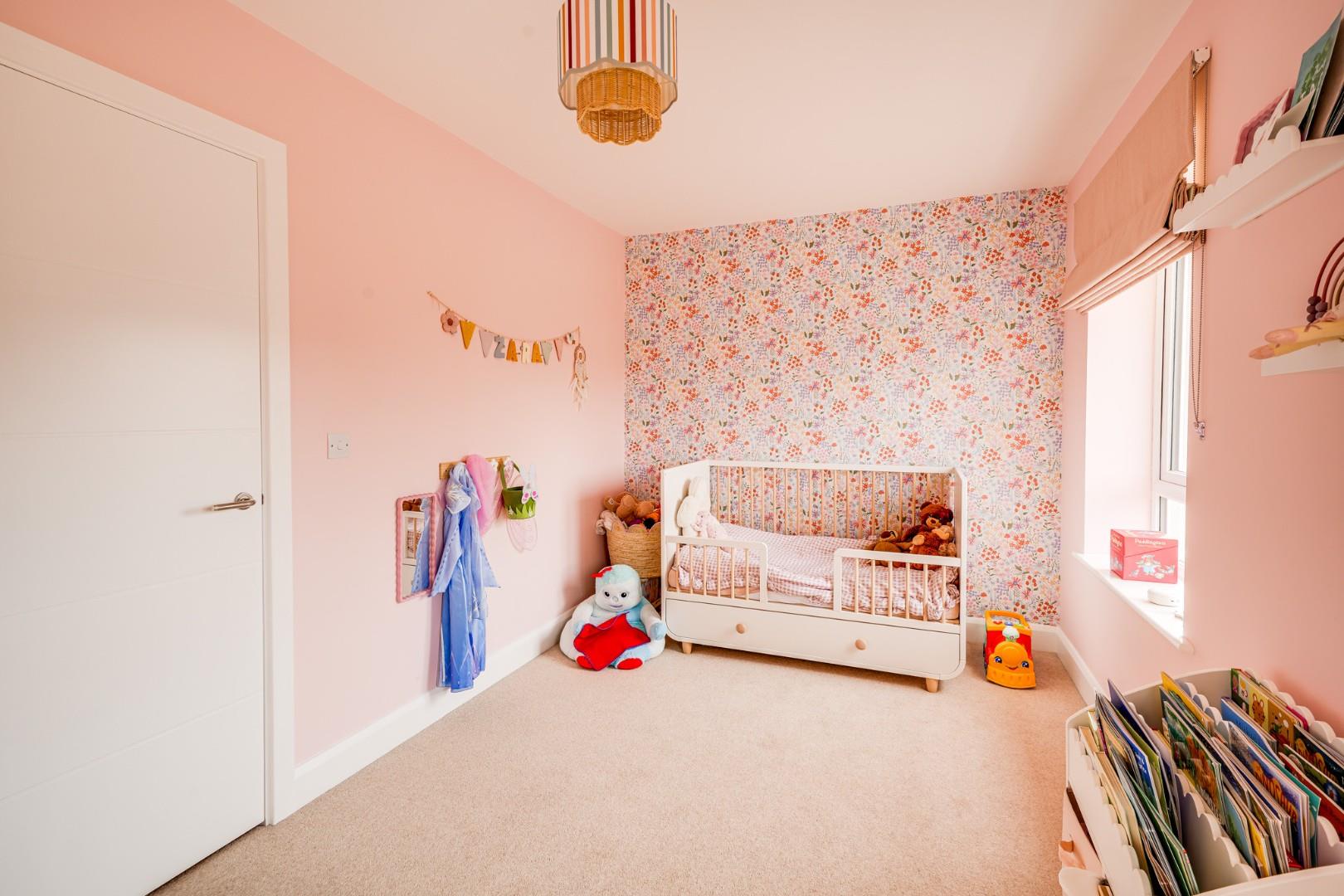 The first floor landing provides access to three well-proportioned bedrooms and the family bathroom. The principal bedroom is a generous double room, tastefully presented and offering comfortable space for wardrobes and additional furnishings. Bedroom two is another good sized double, while bedroom three provides flexibility as a child’s bedroom, nursery or home office. The family bathroom is fitted with a contemporary suite comprising panel bath with shower over, wash hand basin and low level WC, finished in a clean and modern style.