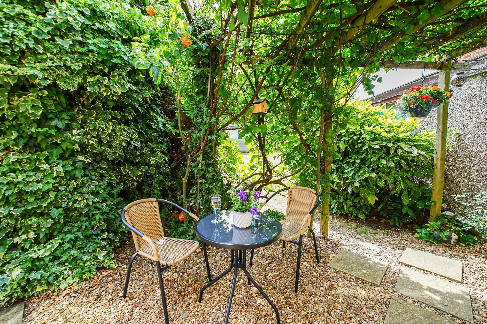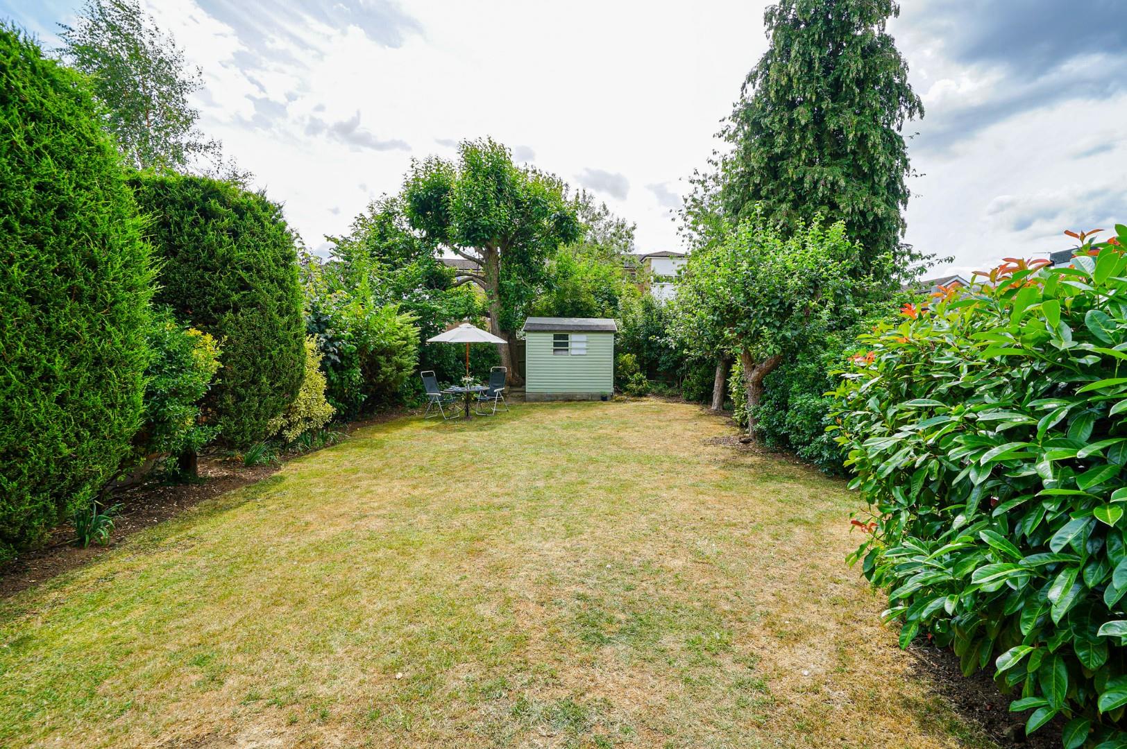 To the front, the home enjoys a green-facing aspect with a double width driveway and a neatly maintained front garden laid to lawn with established shrubs. A driveway runs along the side of the property, comfortably accommodating a further two vehicles and leading to a detached garage with up and over door, power, and lighting. The southerly facing rear garden is a standout feature - generous in size and thoughtfully landscaped. There is potential to extend the property without compromising the sizeable garden. A paved patio area, partially shaded by a charming vine-covered pergola, creates the perfect space for al fresco dining. Beyond lies a spacious lawn, bordered by an array of mature shrubs, offering privacy and colour year-round. A timber shed, complete with power and lighting, sits to the rear and is ideal for storage or hobby use.