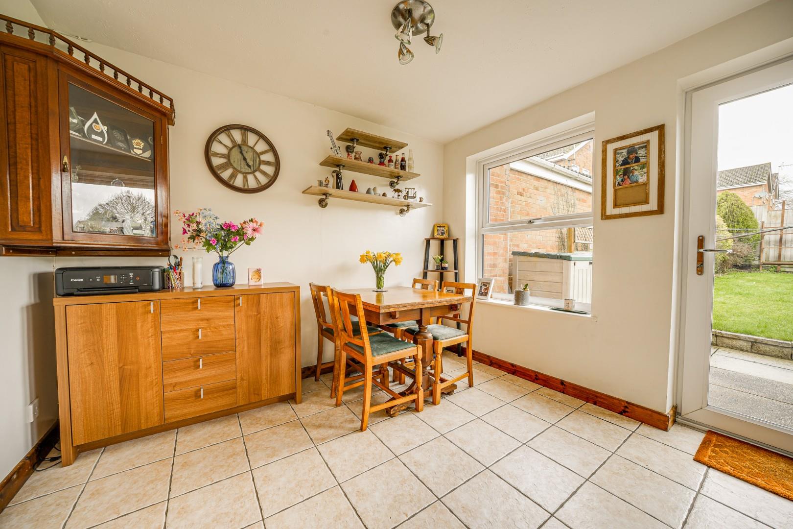 To the front of the property is a driveway providing off street parking and extending to the garage. A path leads to the front door, with neat borders adding to the attractive frontage. The rear garden enjoys a generous space, laid mainly to lawn and enclosed by fencing for privacy. A paved patio area sits adjacent to the house, offering an ideal setting for outdoor seating and entertaining. The garage is accessed via an up and over door from the driveway and features a useful store to the rear which enhances the property’s storage options.