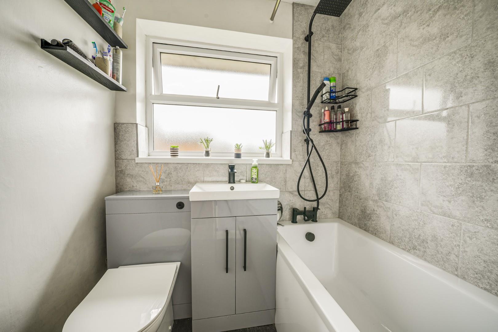 The landing provides access to all three bedrooms and the family bathroom, along with loft space. The master bedroom is a good sized double room, offering comfortable proportions for bedroom furniture. Bedroom two is also a double room, again capable of accommodating a variety of furnishings, while bedroom three is a well-proportioned single room suitable for a child’s bedroom or home office. The family bathroom has been refitted with a stylish three piece suite including low level WC, wash hand basin and panel bath with shower over, finished with quality tiling to water sensitive areas.