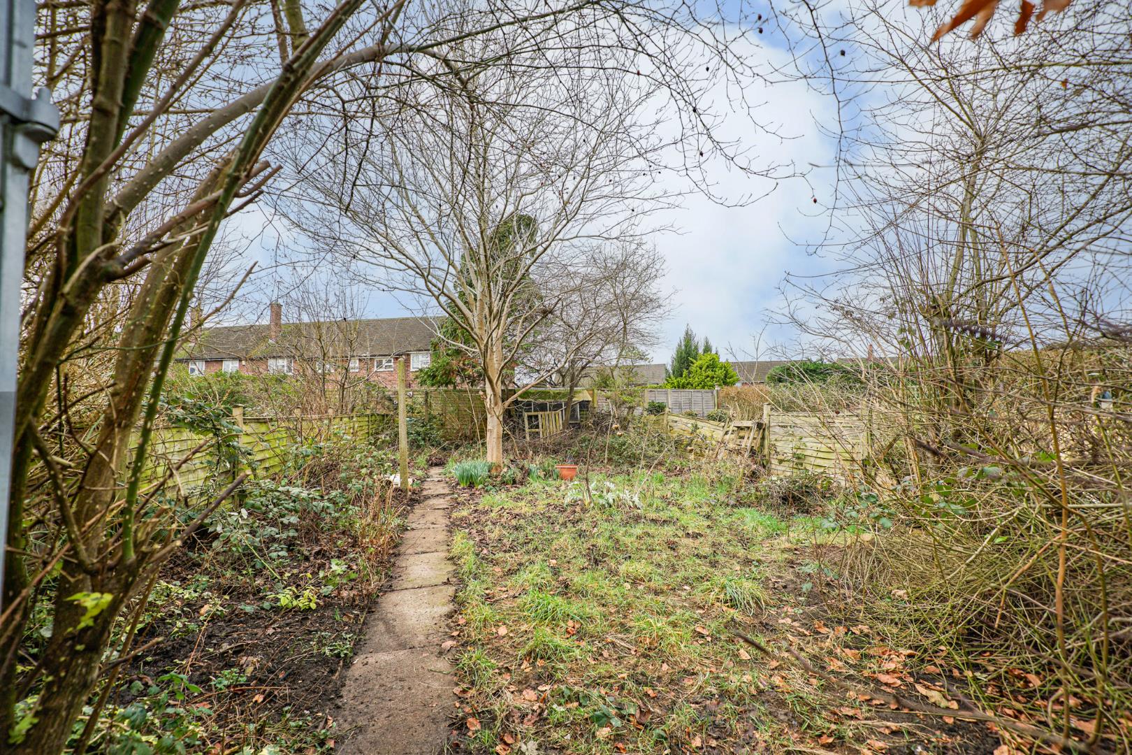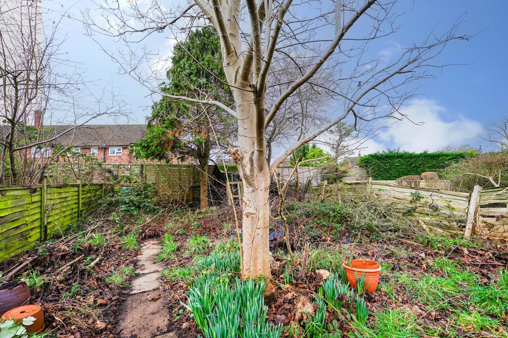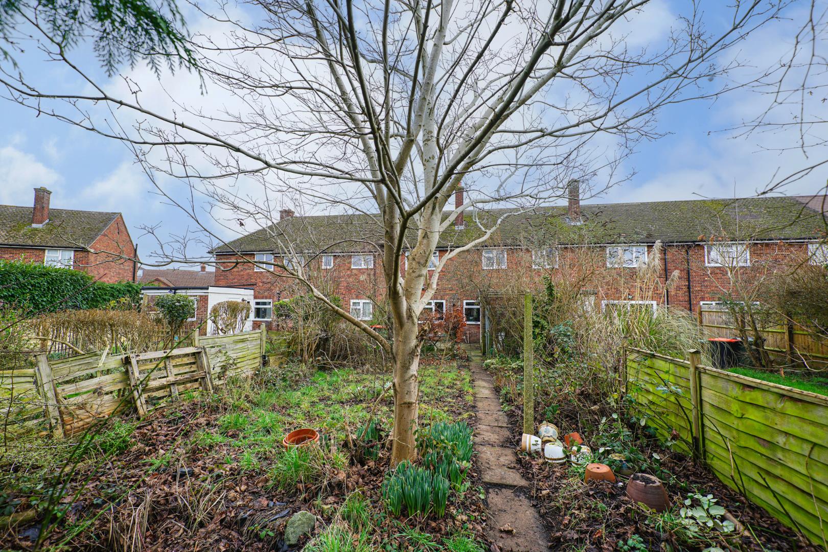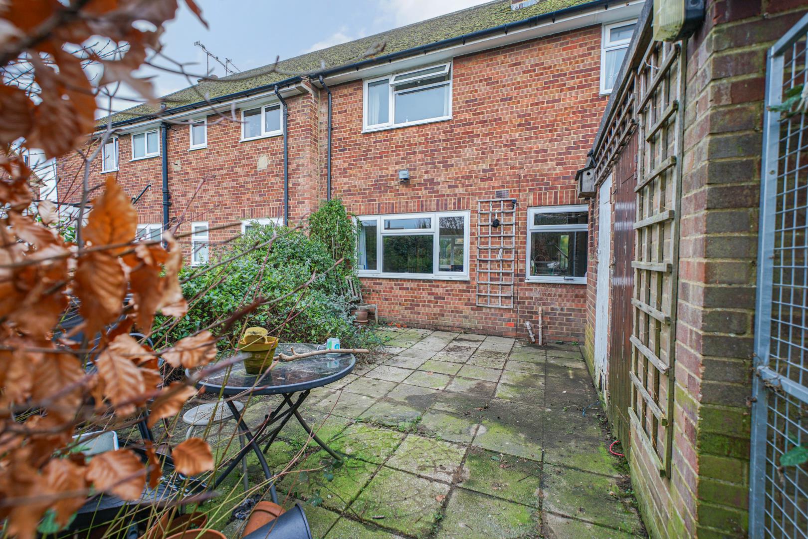 To the front is a paved pathway which leads to the front door with the remainder mostly laid to lawn and surrounded by hedges. A secure door conventionally leads through to the alleyway which provides shared access. Furthermore, you can enjoy a generous private rear garden, providing an ideal area for outdoor dining, relaxation or low-maintenance enjoyment. Further benefits include a garage located in a nearby block, offering secure parking or additional storage.