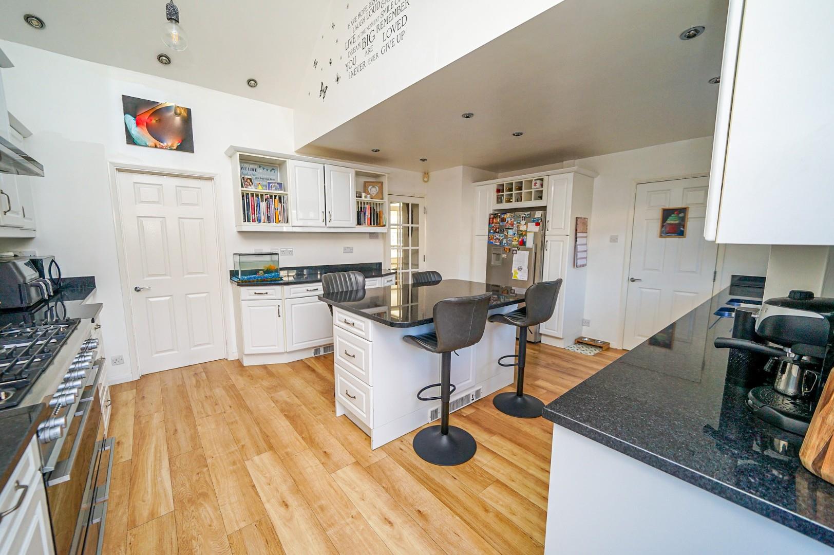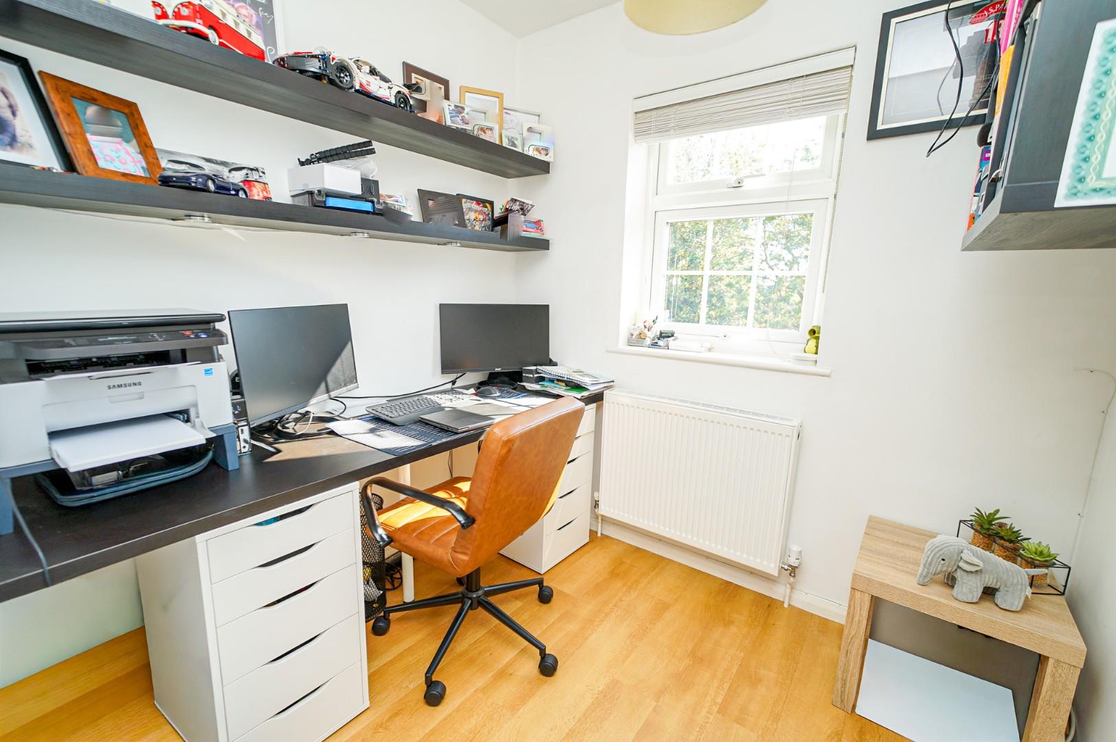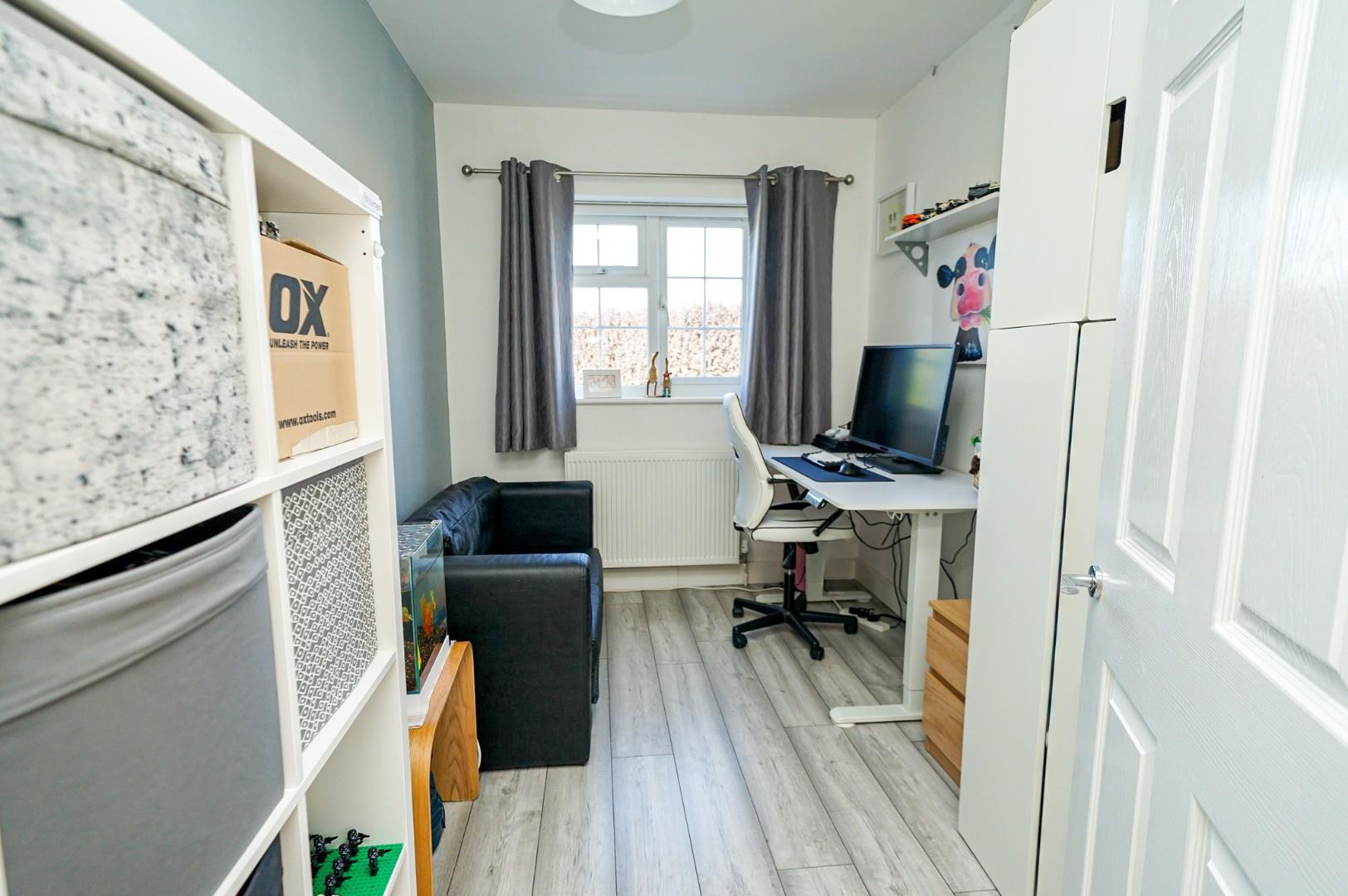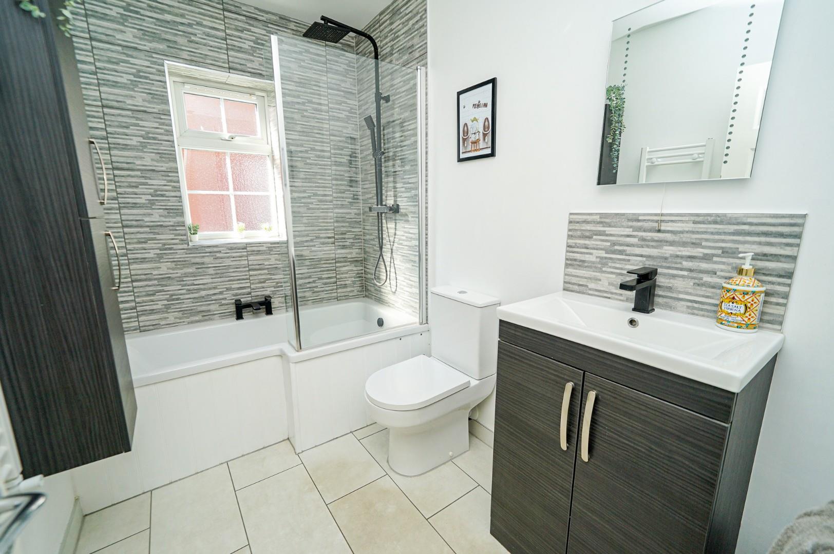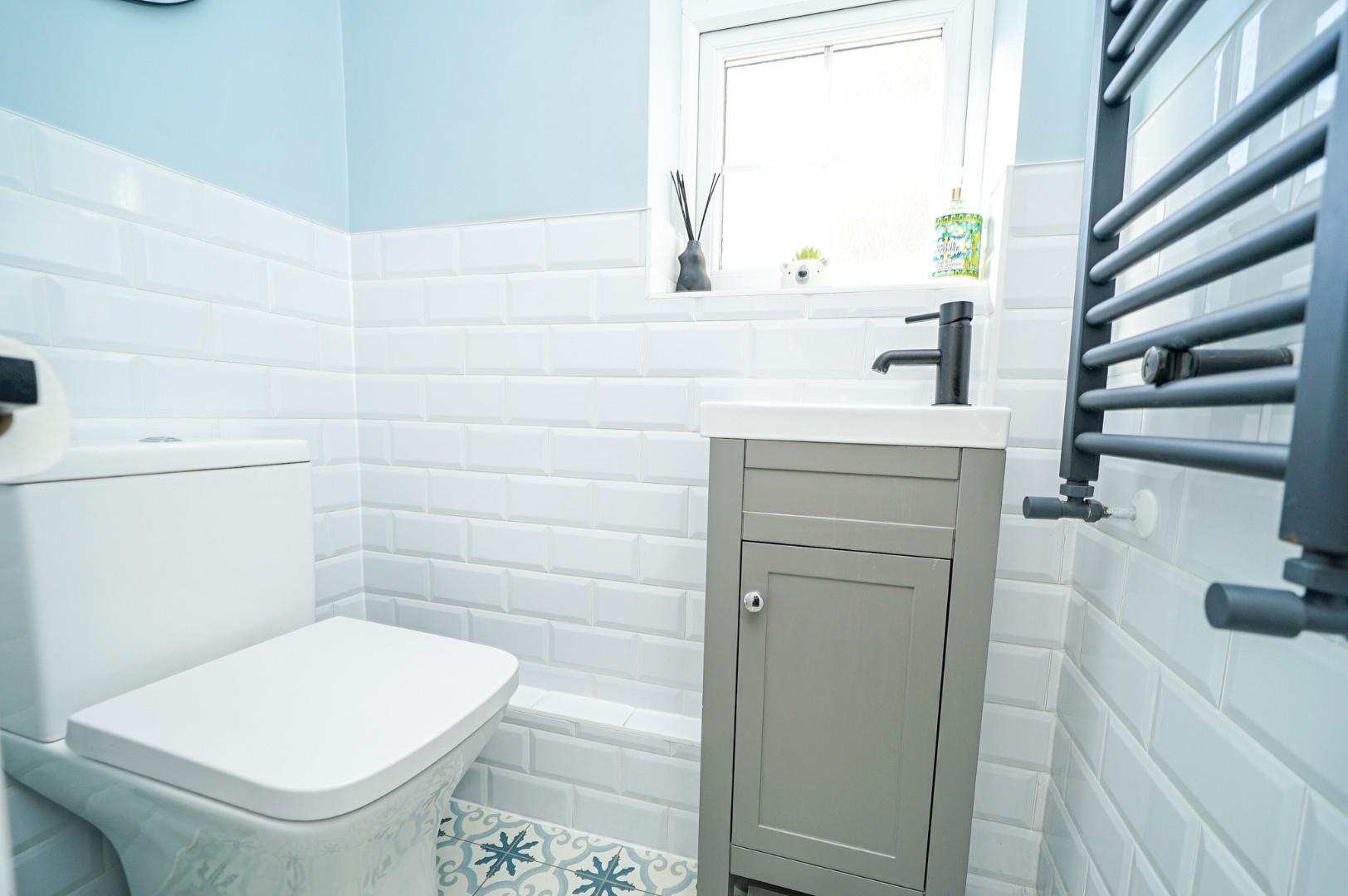 The first floor offers a particularly versatile layout, with four well proportioned bedrooms arranged around a light and airy landing. To the rear, a generous double bedroom with en-suite shower room provides an excellent alternative master suite or guest room, combining comfort with privacy. A further double bedroom to the front overlooks the front, while two additional bedrooms offer flexibility as children’s rooms, a home office or study. All are served by a stylishly fitted family bathroom, complete with a contemporary white suite and elegant tiling.