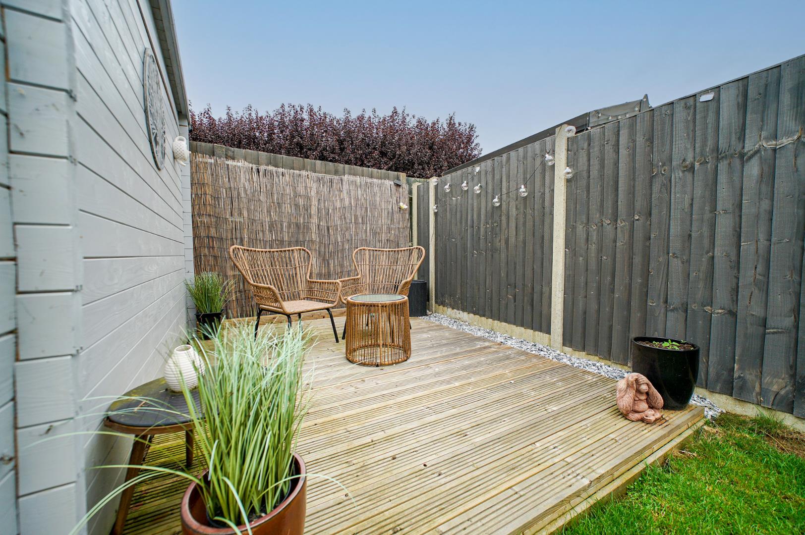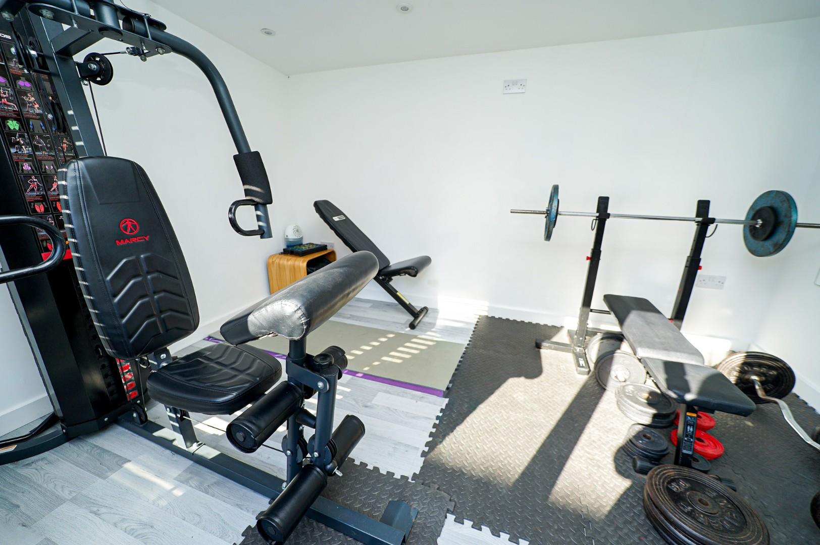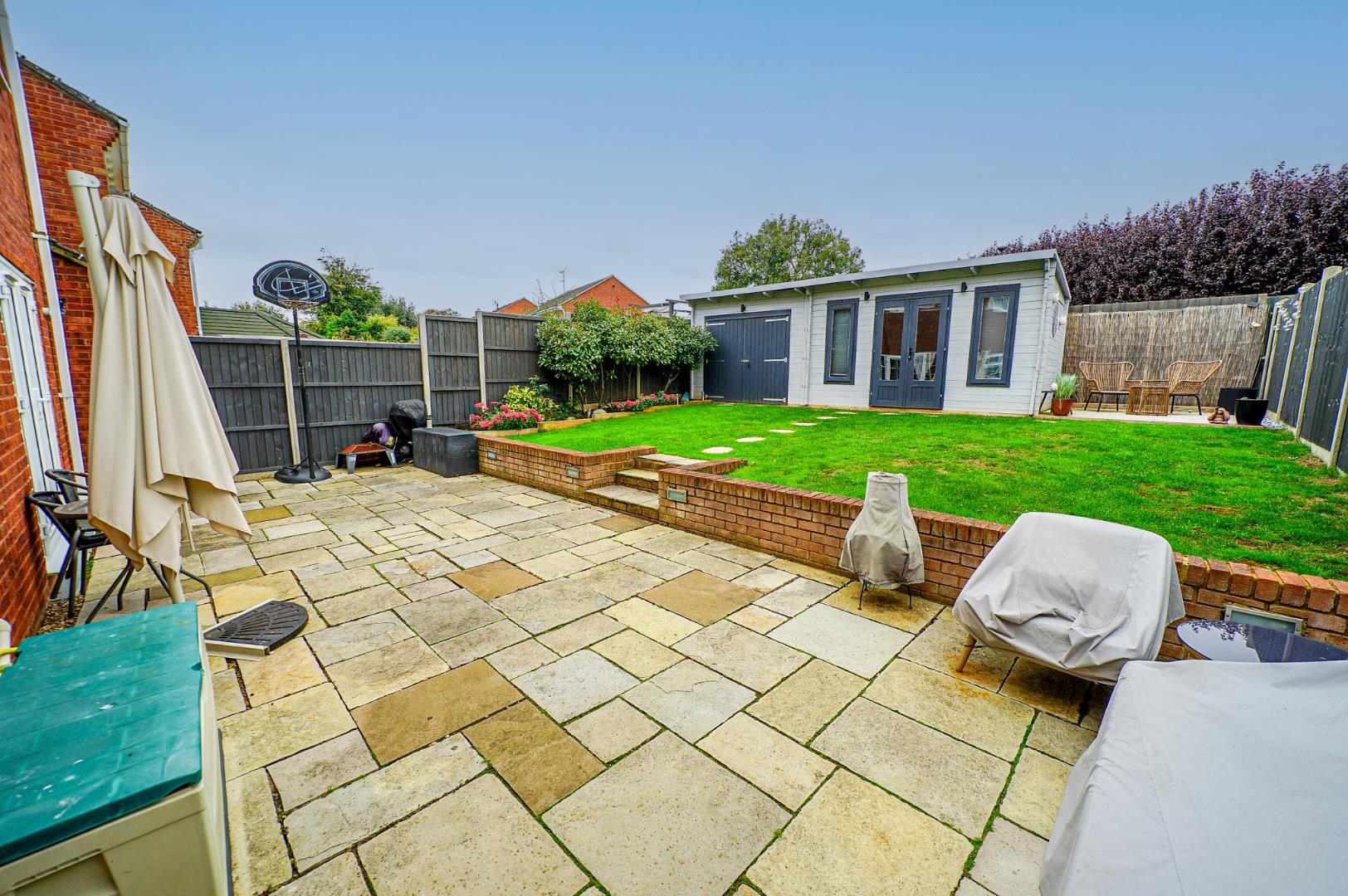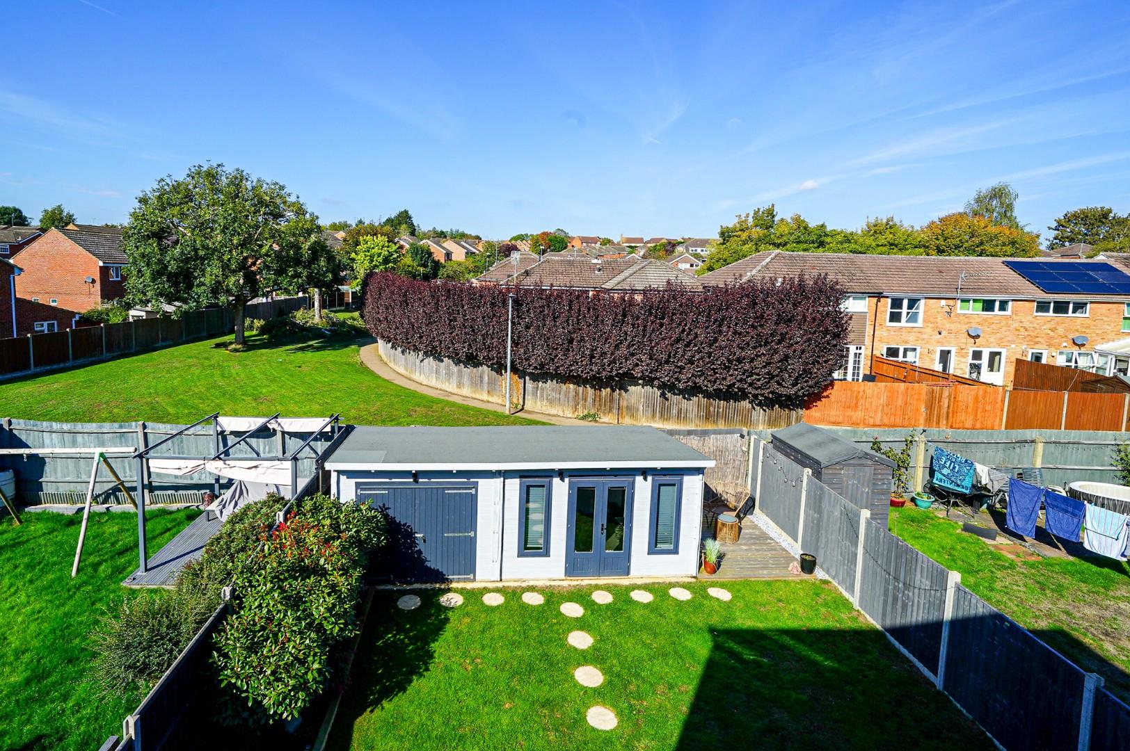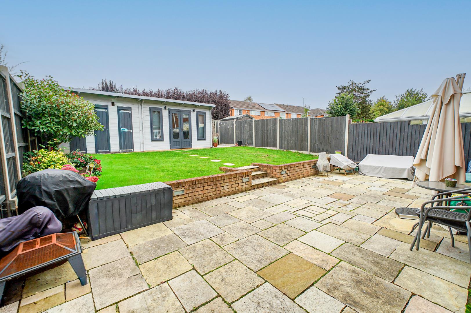 The front is a paved driveway which can fit multiple cars with a side gate providing access to the rear. There is an EV charging point conveniently located by the front door. The rear garden is a superb size and enjoys a private aspect, with patio seating and the rest mostly laid to lawn, while a versatile outbuilding provides ideal space for a home office, studio or gym.