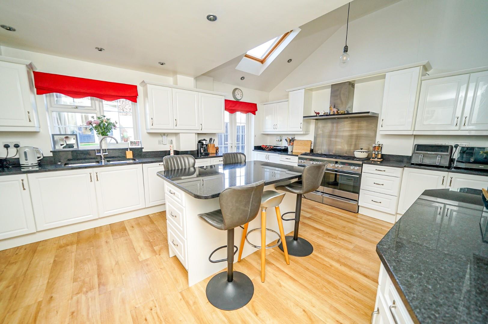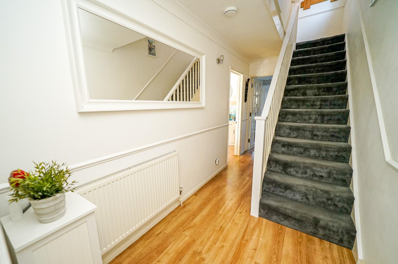 You enter in through the welcoming hallway which leads to a bright and spacious living room, a bay window allowing for an abundance of light to flow through. Through double doors from the living room there is the dining room with views overlooking the pretty rear garden. The heart of the downstairs is a modern open-plan kitchen/breakfast room with ample work surfaces, integrated appliances and direct access to the rear garden. A separate utility room adds further practicality and convenience with a door leading through to the integral garage.