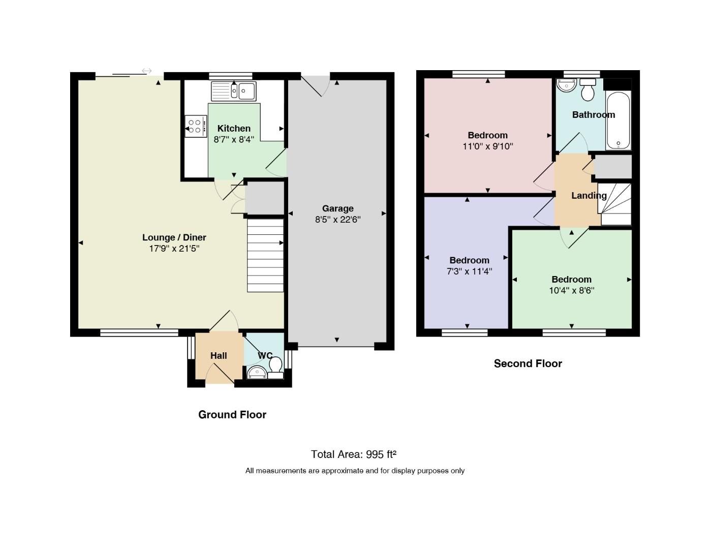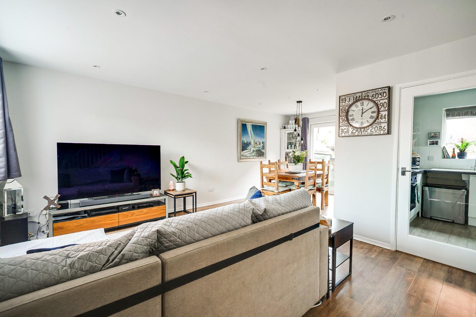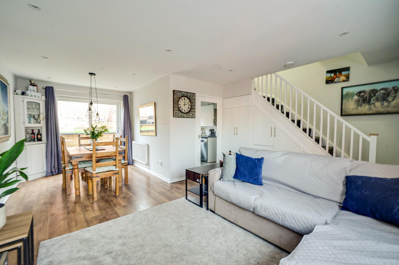 The property is arranged over two floors and flows effortlessly throughout. The ground floor welcomes you into an entrance hall which leads through to a generous lounge/diner, offering ample space for both seating, dining and providing a bright, comfortable environment for everyday living and entertaining. Patio doors provide access to the pretty rear garden. This in turn flows into the fitted kitchen, which features a range of units and work surfaces. creating a practical and sociable layout. A door leads through to the garage which has ample space for storage and additional white goods.