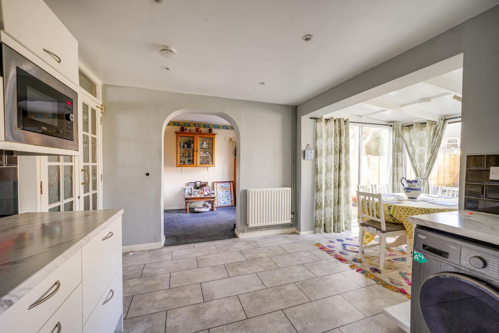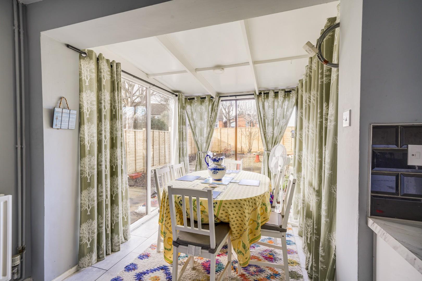 Upon entering the property, an entrance porch makes a perfect space for coats and shoes. To the front of the property sits the spacious lounge, with a pleasant outlook to the front. The layout provides ample space for a range of furniture to suit all needs. A further door leads to the kitchen which is fitted with a range of wall and base level units, complemented by roll-edged work surfaces. There is space for essential appliances including a fridge freezer, cooker and washing machine. The kitchen is open to the conservatory, currently utilized as a dining area, and enjoys views of the rear garden. The dining room overlooks the rear garden. A shower room sits off the dining room and is fitted with a walk in shower cubicle, wash hand basin and low level WC.
