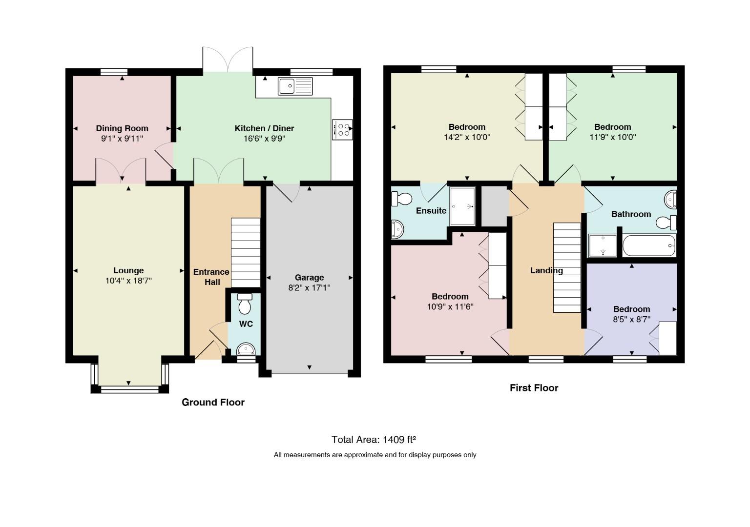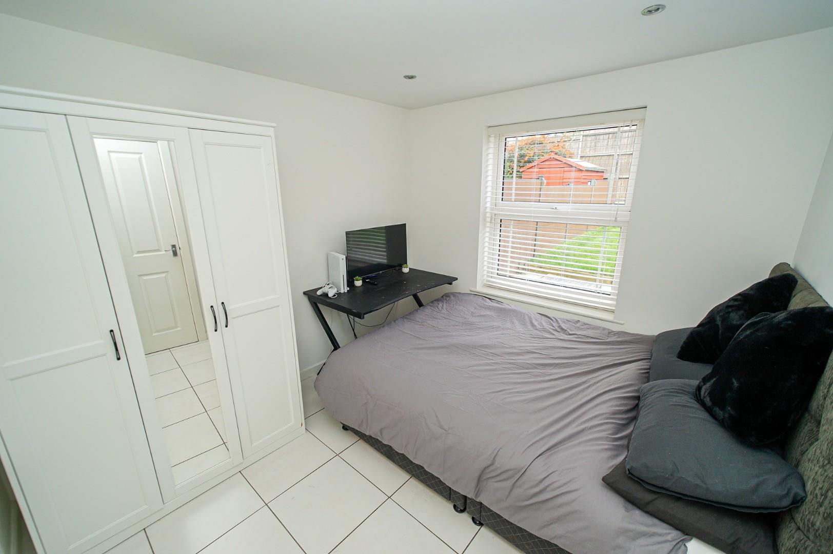The ground floor accommodation is accessed via a welcoming entrance hall, finished with a stylish tiled floor that continues throughout the ground floor, creating a seamless flow. To the right is a useful cloakroom/WC tucked beneath the stairs. The lounge sits to the front and features a bay window, creating a bright and inviting space with double doors opening to the rear dining room—perfect for entertaining or family gatherings. The kitchen/breakfast room spans the rear aspect and is fitted with a modern range of wall and base level units with granite work surfaces. There is an integrated oven and four ring gas hob with hood over, with spaces for both a washing machine and dishwasher. French doors open onto the rear patio, and there is internal access to the dining room and garage, the latter offering excellent potential for conversion, subject to the necessary permissions.