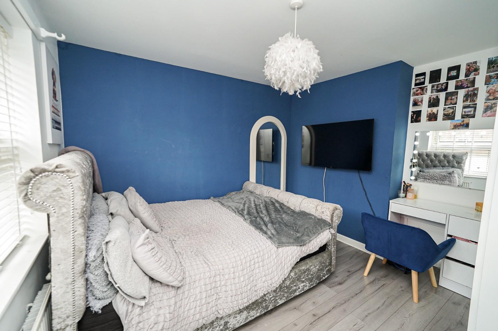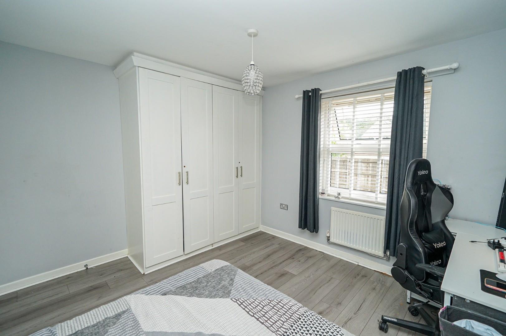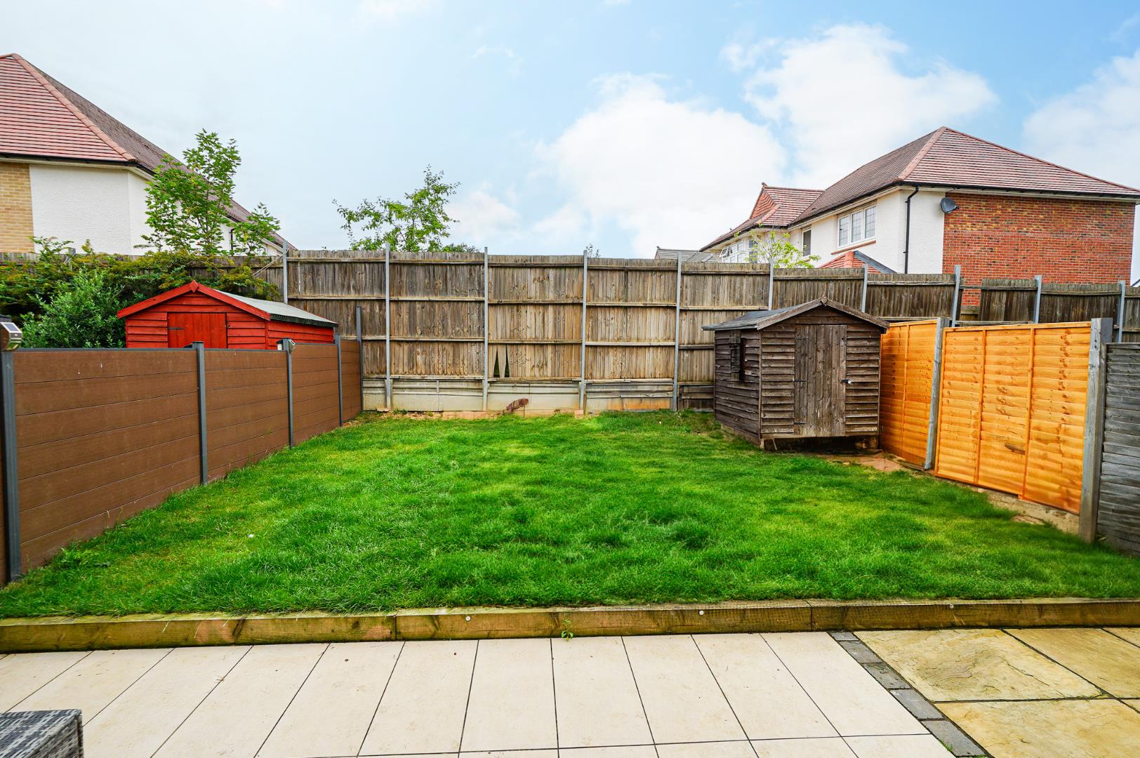 Outside, the front of the property features a block paved driveway providing off-road parking and a neat lawned garden. The rear garden is fully enclosed by panel fencing and includes a paved patio extending across the width of the property, a generous lawn and a timber shed tucked to one corner.