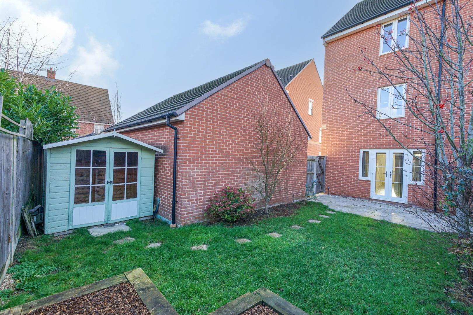 The rear garden provides a pleasant and manageable outdoor space, arranged with a lawn and patio ideal for outdoor dining or relaxation. The front garden is low maintenance with neat borders, the tidy landscaping complements the home’s attractive setting. The driveway is to the side and is for multiple cars which leads to the well proportioned garage.