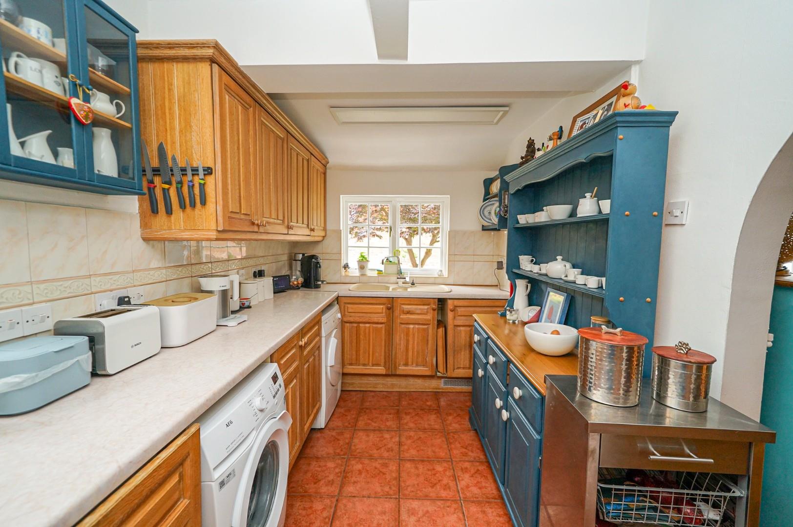 The generous lounge is bathed in natural light courtesy of a handsome bay window to the front aspect, offering ample space for a full complement of living room furniture. The adjacent dining room provides excellent entertaining space, with an archway leading through to the kitchen and a door opening to the sun room, which in turn grants access to the private rear garden. The well-appointed kitchen benefits from integrated fridge-freezer, hob and oven, with additional space for washing machine and either tumble-dryer or dishwasher.