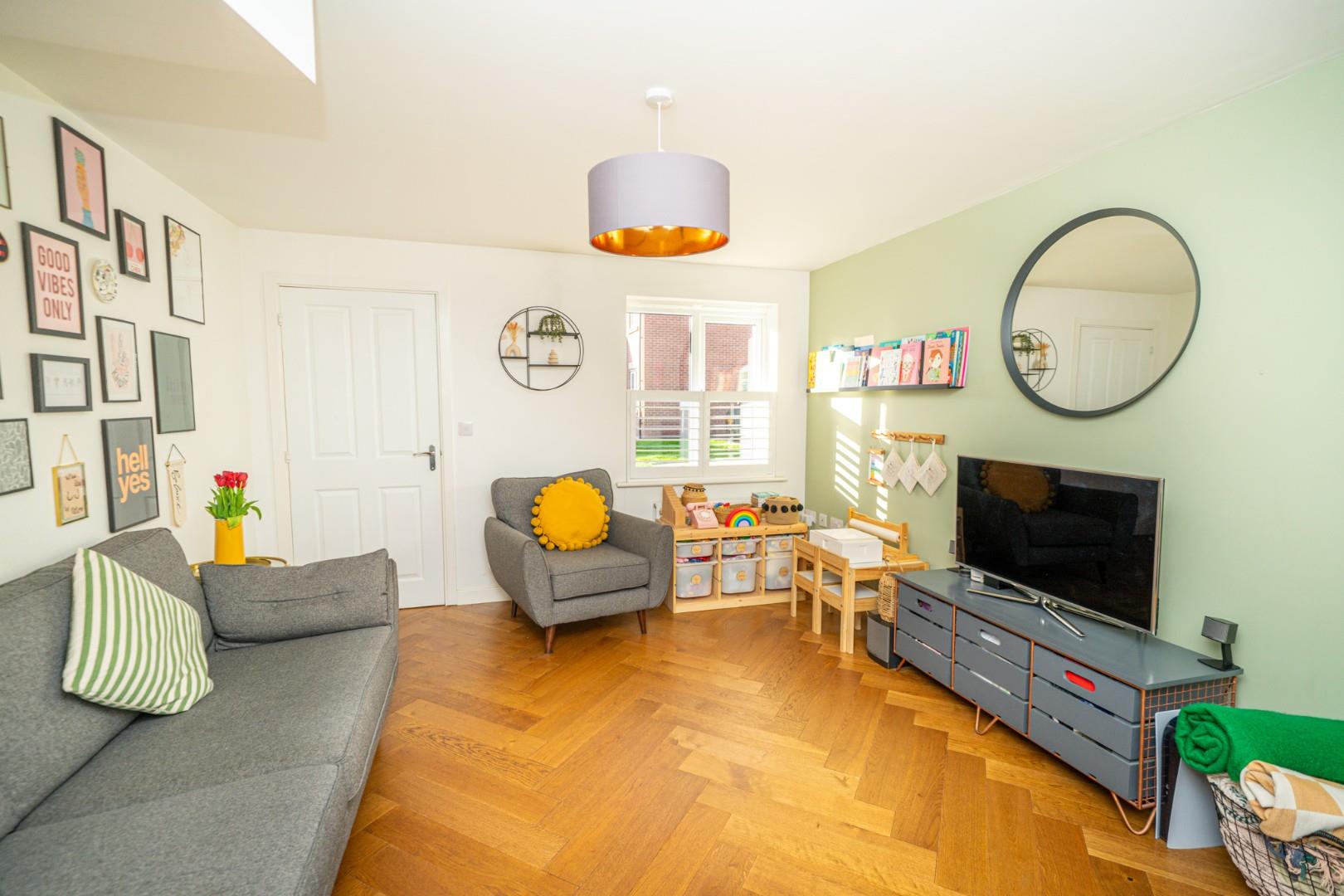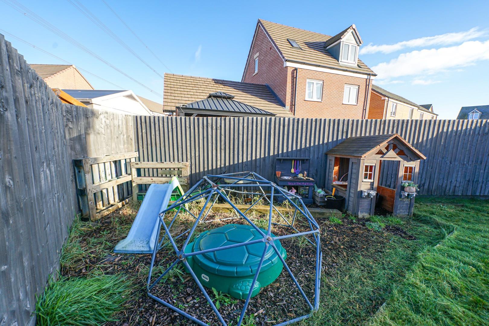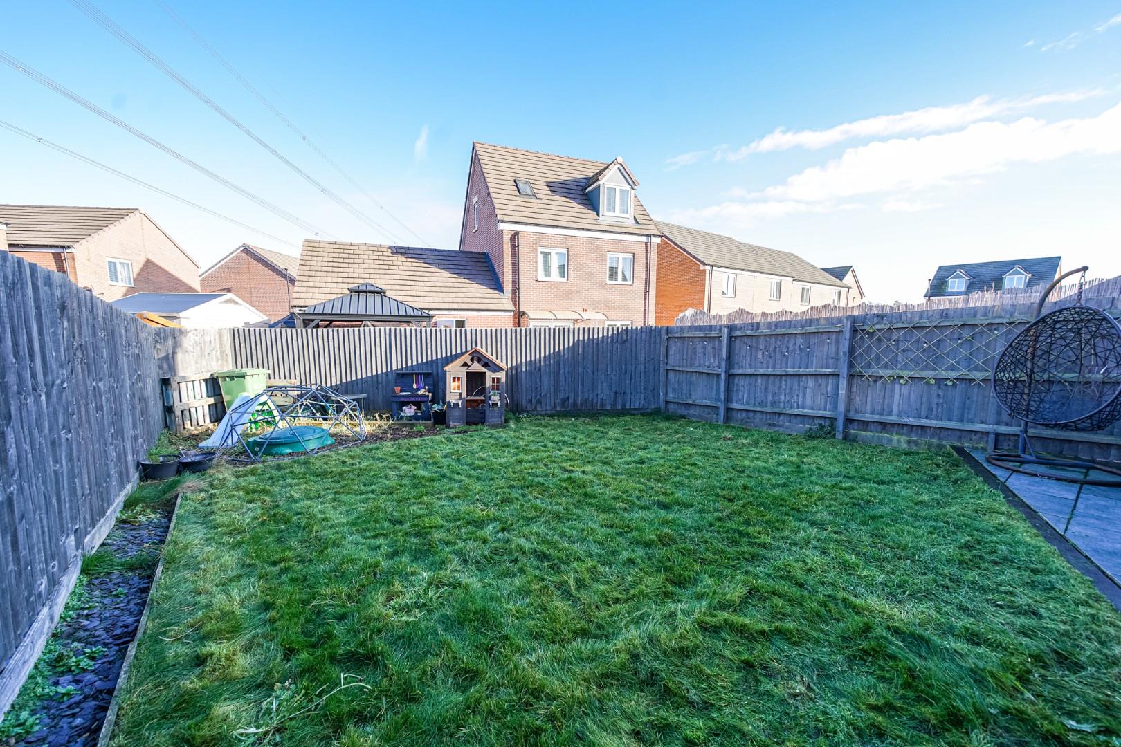 The property boasts a larger than average rear garden for this style of modern home. It features a paved patio area sat off the kitchen/diner, and the remainder is laid mainly to lawn and enclosed by panel fencing. A gate provides rear access and leads directly to the driveway parking. There is driveway parking for two vehicles with additional visitors' bays available nearby.