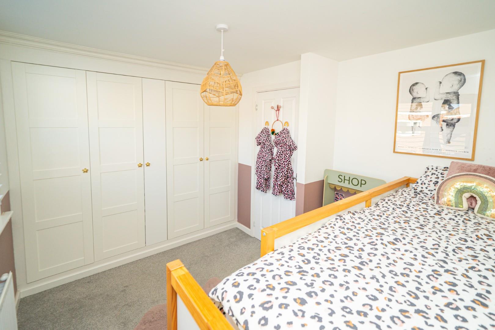 The landing provides access to two of the three double bedrooms and the family bathroom. The two bedrooms on this floor are both generous double rooms, providing fantastic flexibility; they could be used as a guest room, a games room, a craft room, or a dedicated home office. The larger of the two is positioned at the front of the property. The family bathroom comprises a panel bath with a shower over, a wash hand basin, and a low-level W/C. Neutral tiling and a window ensure a fresh feel and natural ventilation.