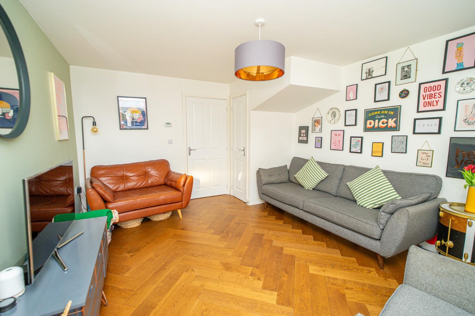 Enter via the front door into the entrance hall, which provides a welcome buffer from the outside and offers storage space for shoes and coats. A door leads through to the bright and versatile lounge. This room is perfect for relaxing and features high-quality engineered wood flooring which extends through the majority of the ground floor, offering a sleek, continuous finish. An inner hall includes the stairs to the first floor and provides access to the much-needed downstairs cloakroom/WC. The final room on the ground floor is the spacious kitchen/diner. Fitted with contemporary wall and base units, it includes a built-in electric oven and gas hob. There is space for a dining table, fridge freezer, and washing machine. A set of French doors provides direct access and views out over the rear garden.