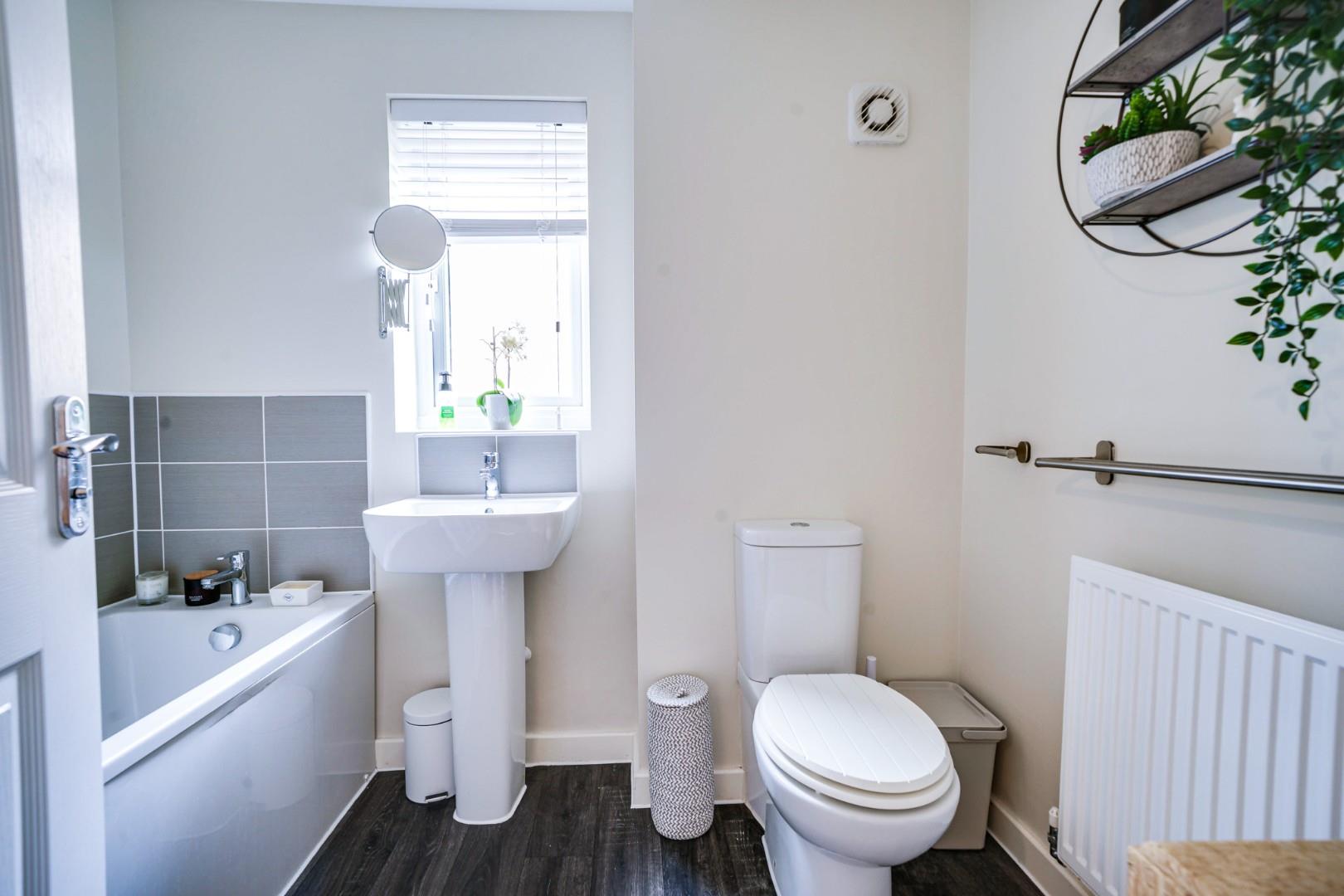 This well-presented home is arranged across three thoughtfully designed floors, offering flexible and spacious accommodation ideal for modern family living. The ground floor is centred around a welcoming entrance hall that flows through to a bright living space, creating a comfortable area to relax and entertain. To the rear, the kitchen and dining area forms the hub of the home, providing generous worktop and storage space while enjoying direct access out to the garden, making it both practical and sociable. The WC is centrally located and comprises of a low level WC and vanity hand wash basin.