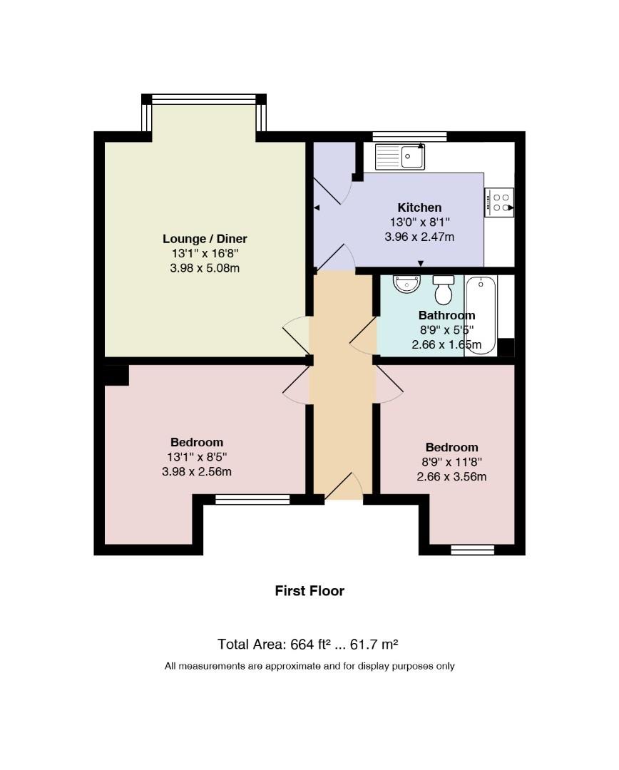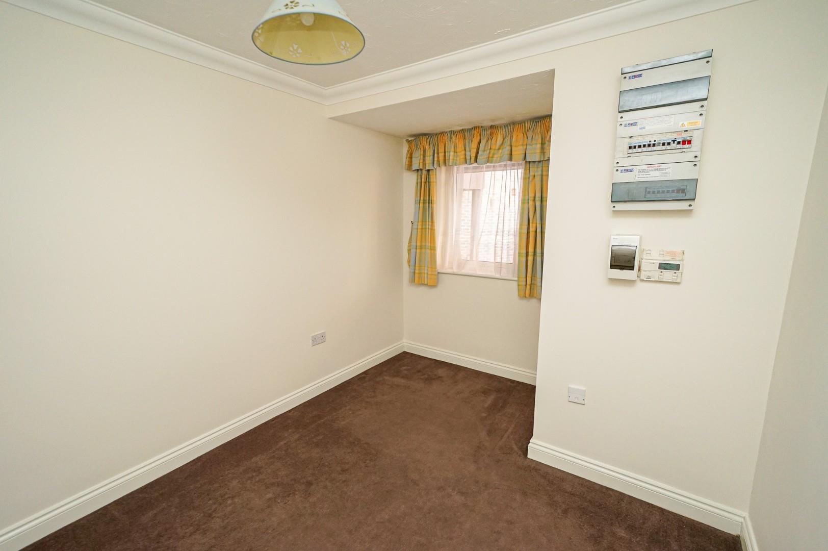Upon entry, you are greeted by a welcoming hallway laid with laminate flooring, providing access to both bedrooms, the lounge/diner, bathroom, and kitchen. The light and bright lounge/diner is a particular highlight, featuring a large box window that floods the space with natural light. There is ample room for a range of living and dining furniture, making it ideal for both relaxing and entertaining. The kitchen is well appointed and includes an integrated fridge/freezer, cooker, and electric hob, with space available for various white goods. There is plenty of storage provision, and a useful cupboard serves as an airing cupboard. The accommodation includes two bedrooms: the larger bedroom would make a good-sized double, whilst the second bedroom would serve excellently as either a guest bedroom or home study. The bathroom comprises a low-level WC, vanity wash hand basin, and bath with shower over, offering a practical suite for everyday use. The property benefits from lift access to the first floor.