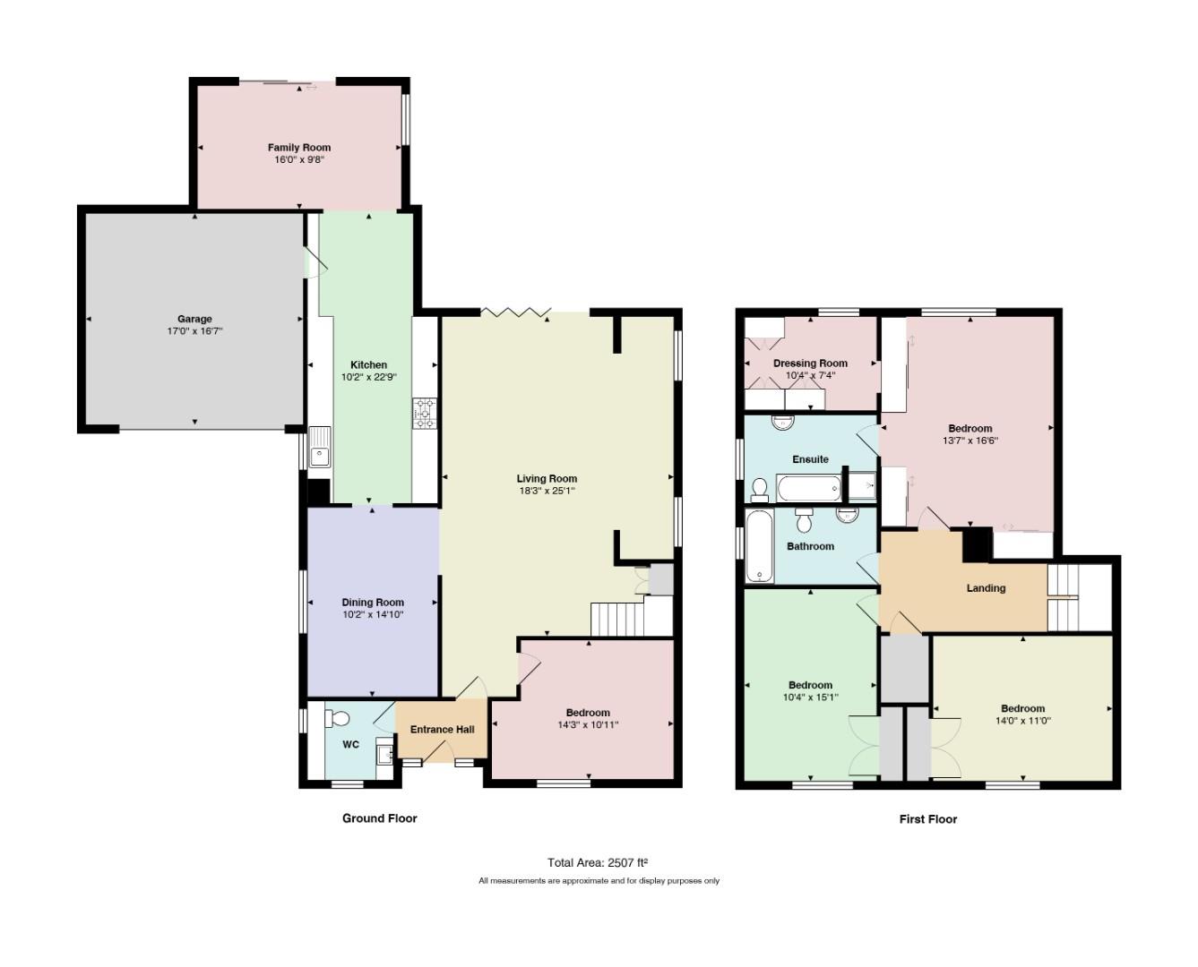 The first floor continues to impress, with three well proportioned double bedrooms arranged around a spacious landing. The master suite offers a calm and luxurious retreat, complete with an extensive range of fitted wardrobes and a concealed dressing area. The four piece en-suite bathroom is finished to a high standard, incorporating both bath and separate shower. Two further generous double bedrooms benefit from built-in wardrobes and excellent natural light, making this an excellent choice for families of all ages. The family bathroom has been refitted and finished with quality sanitaryware and contemporary styling, complementing the home’s overall level of presentation.