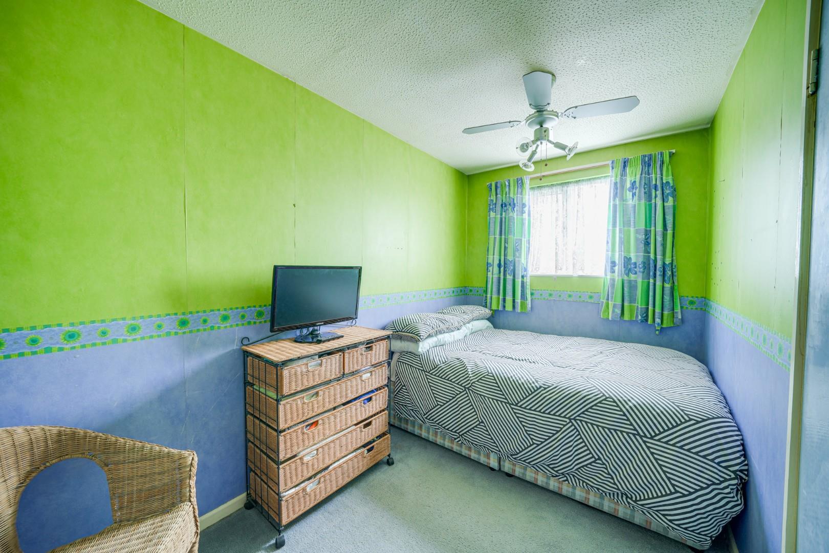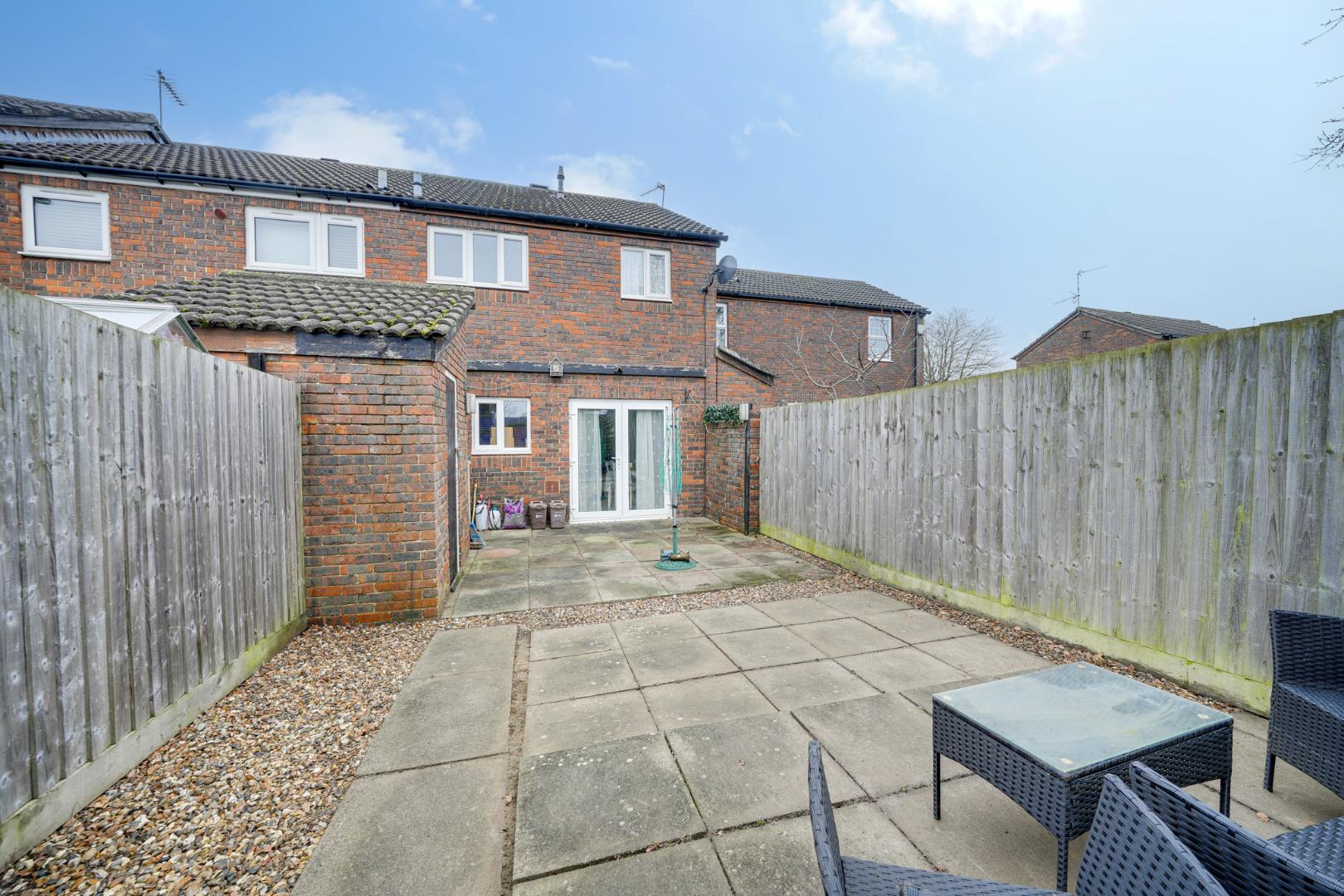 To the front of the property is a useful external store positioned adjacent to the porch, with a pathway leading to the front entrance. The rear garden is designed for low maintenance, laid mainly to paving with gravelled borders. A brick-built shed provides additional storage, and a rear gate offers direct access onto the neighbouring park, a particularly appealing feature for those seeking immediate access to open green space.