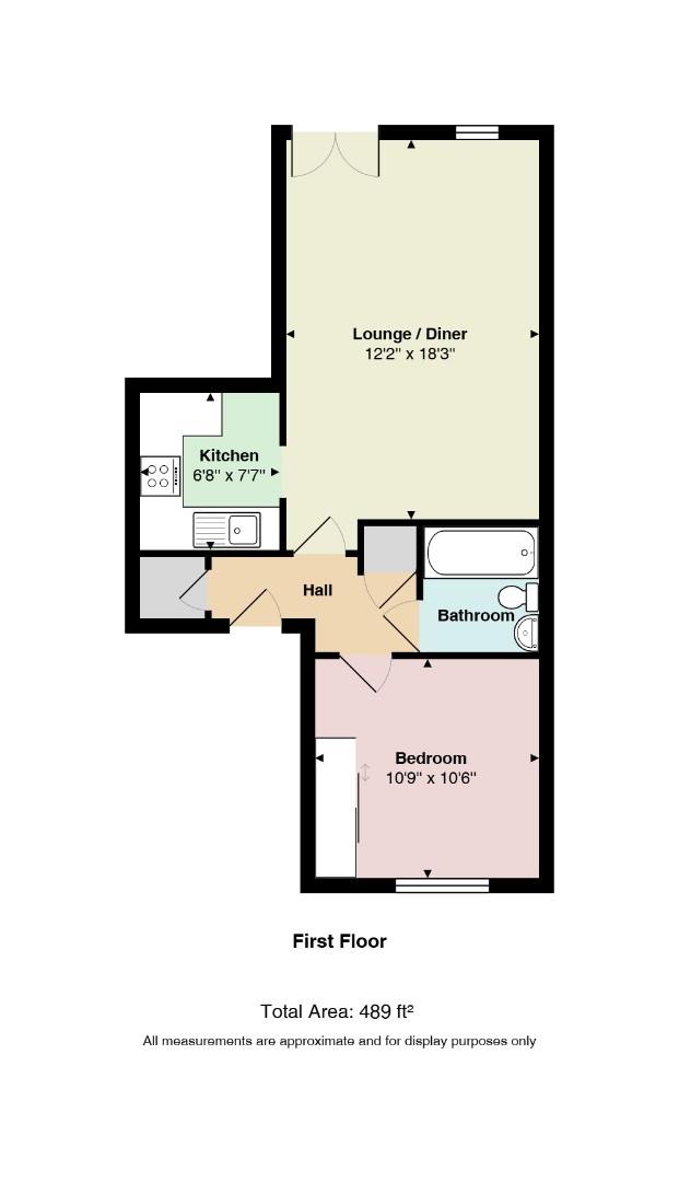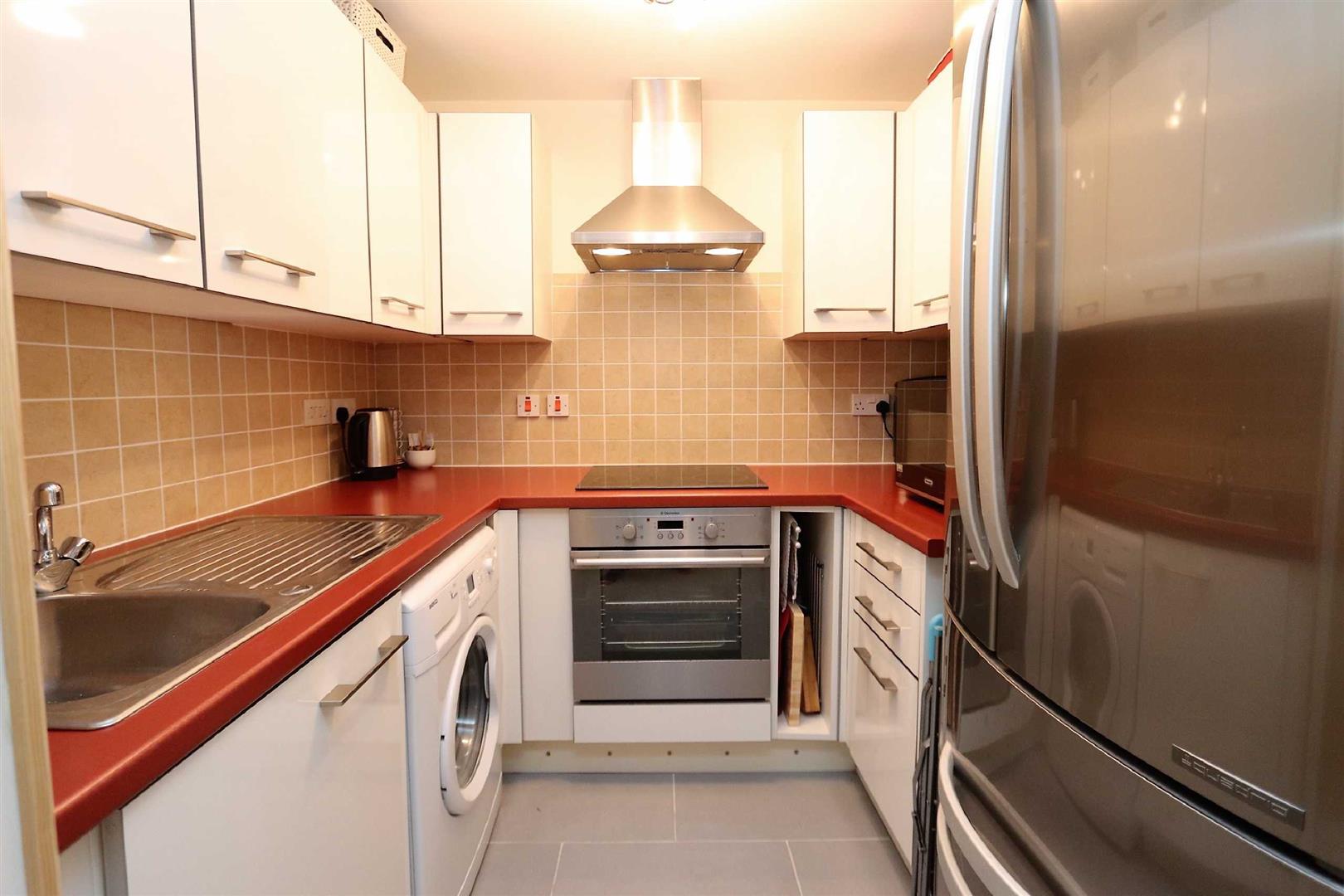 Accessed via a secure communal entrance, the property opens into a welcoming hallway with doors to all rooms. There is also a useful built-in storage cupboard. The spacious lounge/diner is bathed in natural light, courtesy of the Juliet balcony that offers pleasant views over the communal gardens. This versatile space comfortably accommodates both living and dining furniture, creating an inviting environment for relaxation and entertaining. The modern fitted kitchen is equipped with a range of wall and base units, complemented by roll-edged work surfaces. Integrated appliances include an oven and four-ring gas hob, while there is space for a washing machine and fridge freezer, catering to all culinary needs. A generously sized double bedroom overlooks the rear aspect, providing a tranquil retreat. The room offers ample space for freestanding furniture and benefits from a neutral décor, allowing for personalisation. The contemporary bathroom comprises a three-piece suite, including a low-level WC, pedestal wash hand basin, and panel bath with shower over. Tiling to water-sensitive areas and a heated towel rail complete the space.