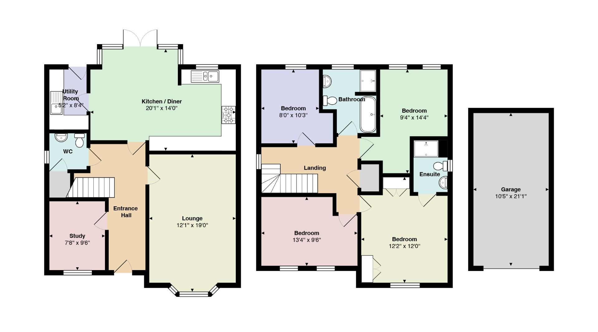 The spacious landing provides access to all bedrooms, the family bathroom and the airing cupboard. The master bedroom suite occupies a wonderful position at the front of the home, featuring a wealth of space for furniture and fitted wardrobes, and a beautifully appointed ensuite shower room with modern fittings and contemporary tiling. The remaining three bedrooms are each well proportioned, making this an excellent choice for growing families of all ages. The family bathroom is finished to a high standard, comprising a four-piece suite with panel bath, shower cubicle, low level WC and pedestal wash hand basin, complemented by modern tiling to water sensitive areas.