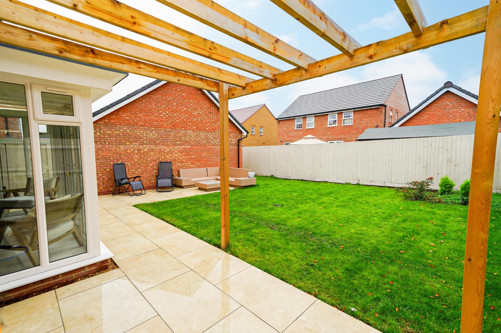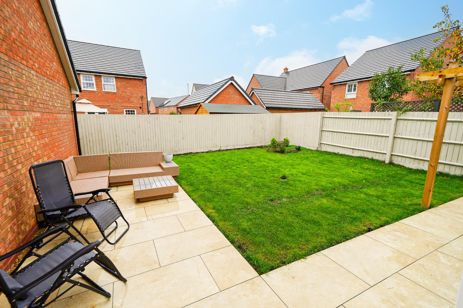 To the front, a driveway provides off-road parking and an electric vehicle charging point, and extends to the garage, which is fitted with power, lighting. There is an attractive lawned garden to the front bordered by planting, creating excellent kerb appeal. The rear garden enjoys a desirable southerly aspect and has been landscaped to an excellent standard. A generous upgraded paved patio offers a superb space for outdoor dining and relaxation, with the remainder laid to lawn and enclosed by timber fencing.
