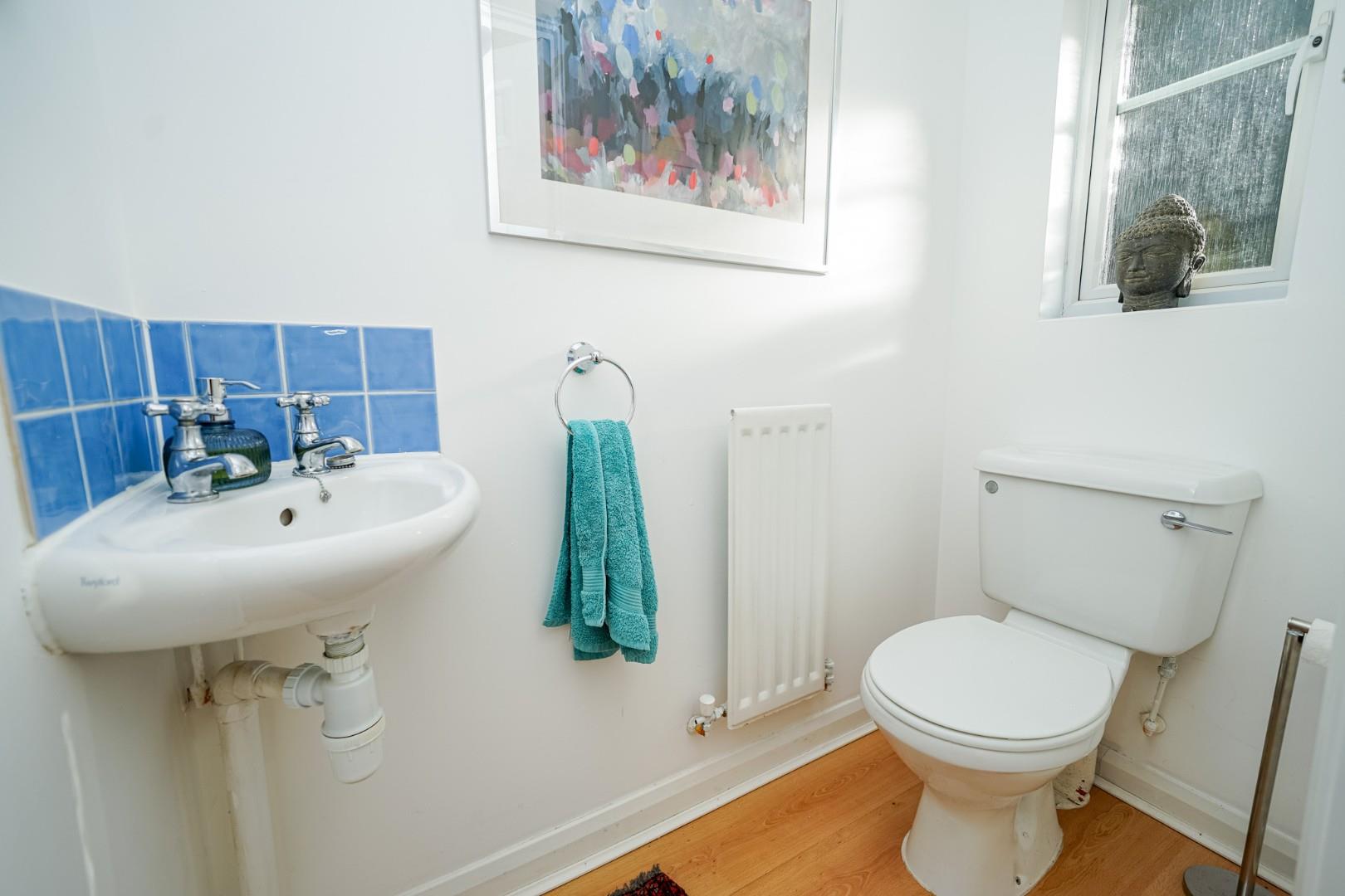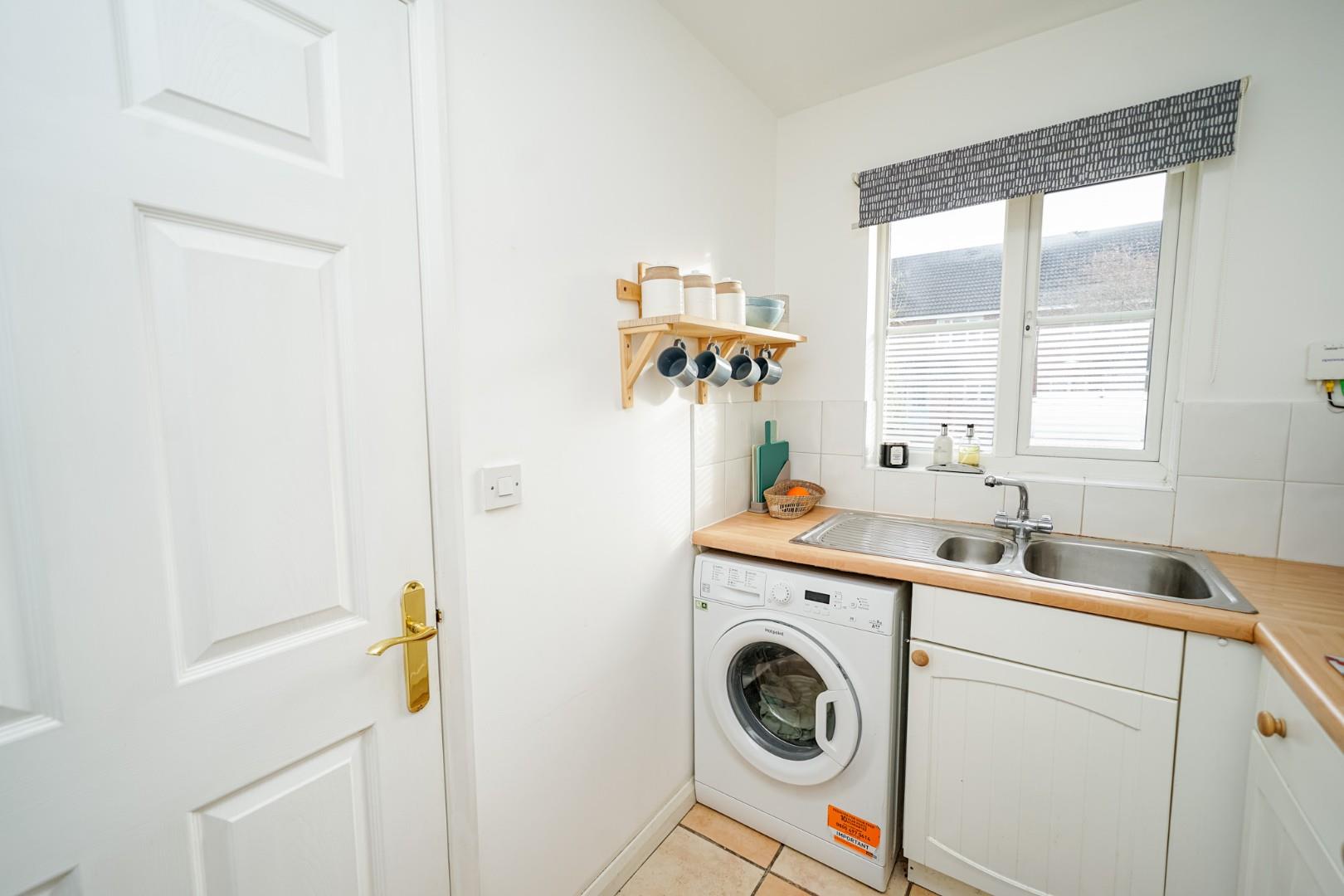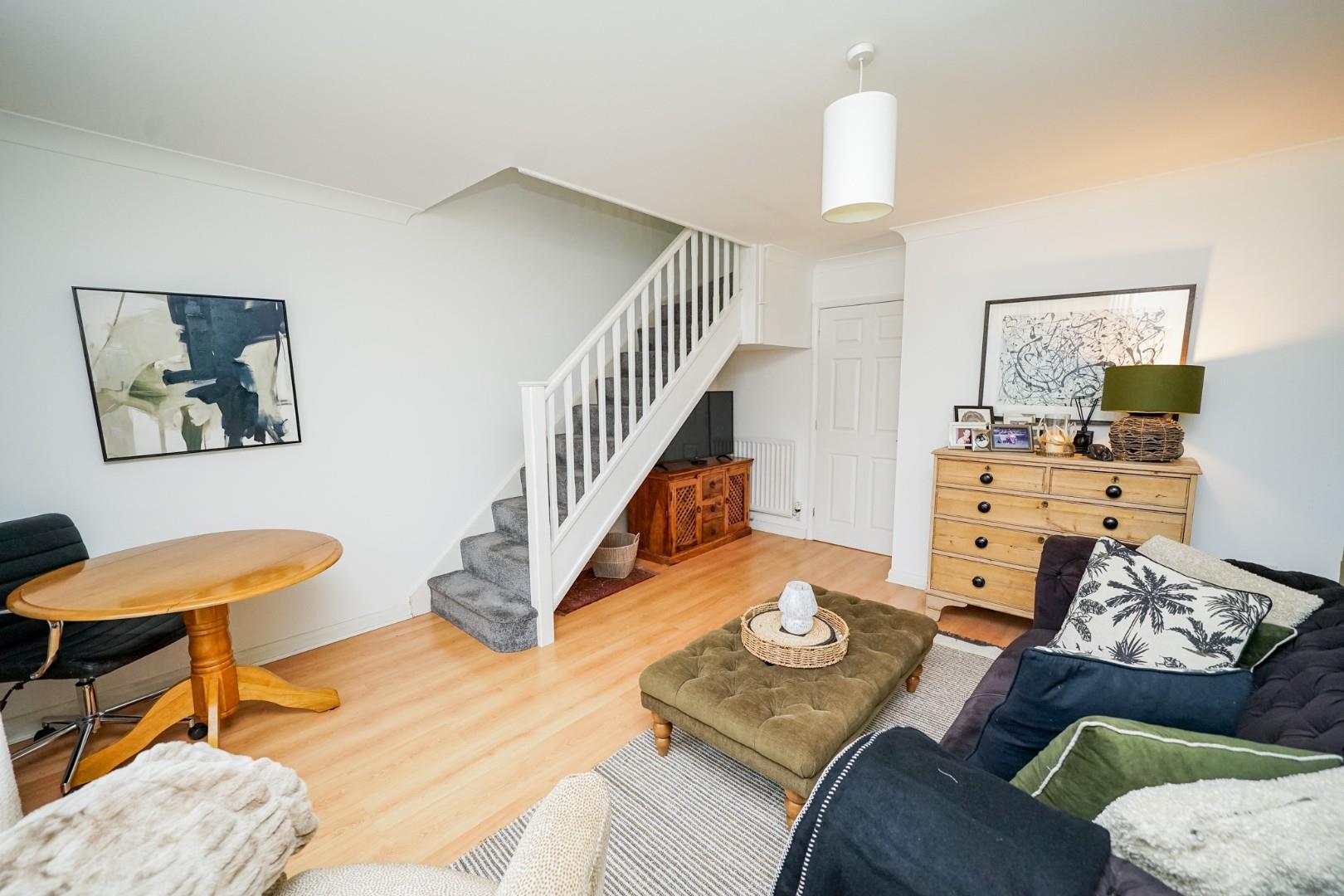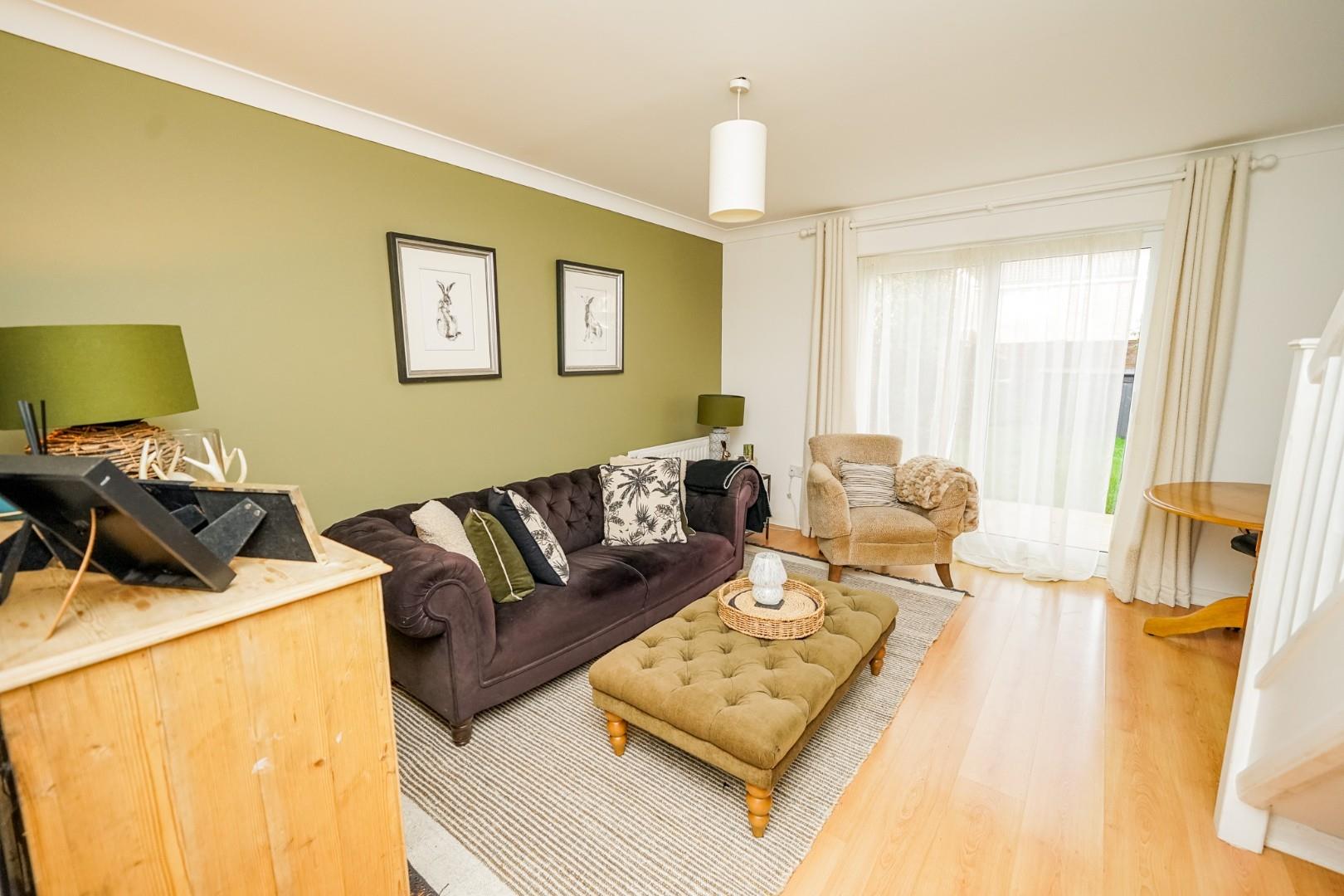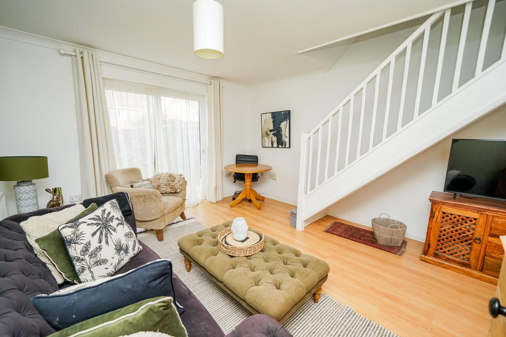 The home opens into a welcoming hallway giving access to a convenient guest WC. At the front of the property is the kitchen which is fitted with a range of units and work surfaces, providing a well-organised and functional cooking space. To the rear is the spacious lounge/diner, enjoying views over the garden and offering an inviting area for both everyday living and entertaining, with generous room for seating and dining furniture.