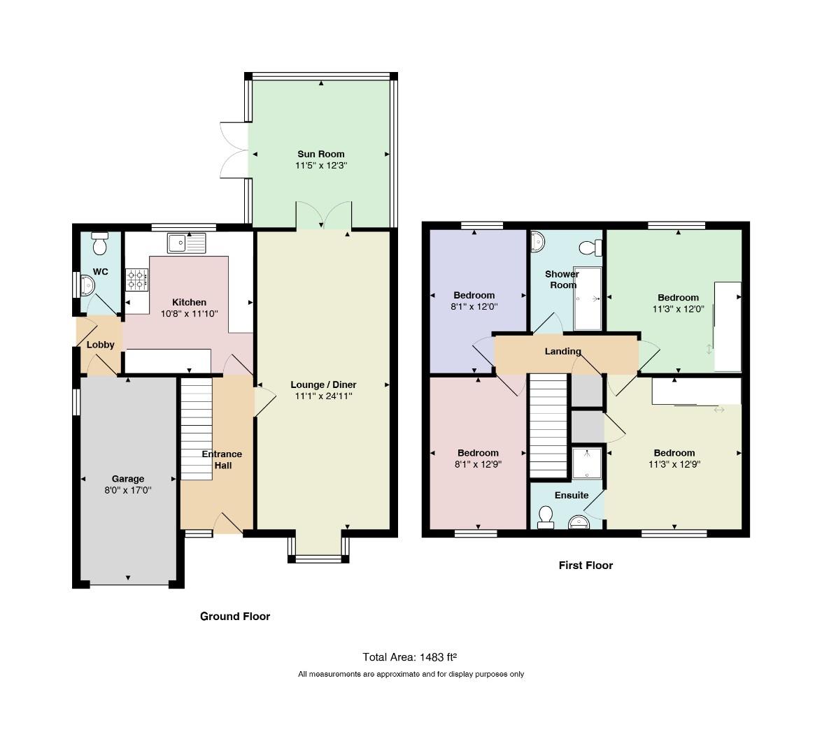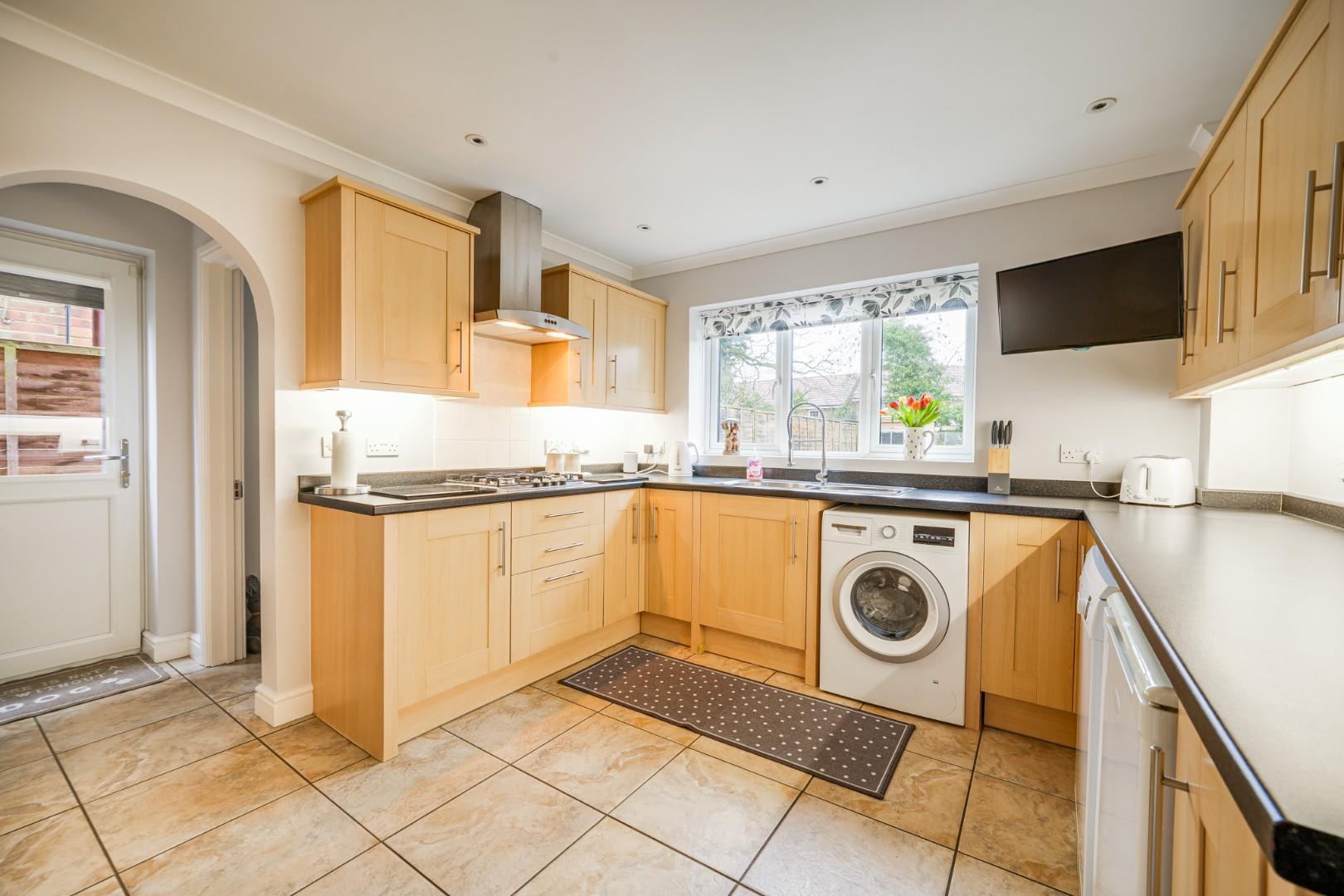 A composite front door opens into a welcoming entrance hall, with stairs rising to the first floor and doors leading to the principal living spaces. The standout feature of the home is the impressive 24ft+ lounge/dining room, creating a wonderfully spacious and versatile living environment. The lounge area sits to the front aspect, offering generous space for a variety of furniture arrangements centred around a flueless gas fire, forming a natural focal point. To the rear, the dining area comfortably accommodates a family-sized table, ideal for both everyday meals and entertaining. Doors open through to the sun room, which has been upgraded with an insulated roof to ensure comfortable year-round use. This additional reception space enjoys attractive views over the rear garden and provides excellent flexibility as a sitting area, playroom or hobby space. The kitchen is fitted with a range of wall and base level units with roll edged work surfaces over, along with an integrated double oven and gas hob with extractor hood above. There is space for a variety of additional appliances, making it both practical and functional. A useful lobby sits off the kitchen, providing access to the cloakroom/WC, the integral garage and a side door to the garden - ideal for day-to-day family living. The integral garage benefits from an electric up-and-over door along with power and lighting.