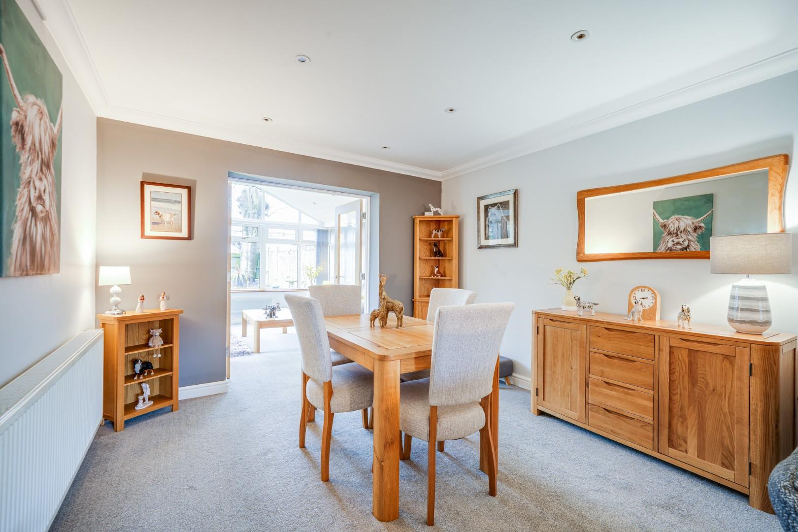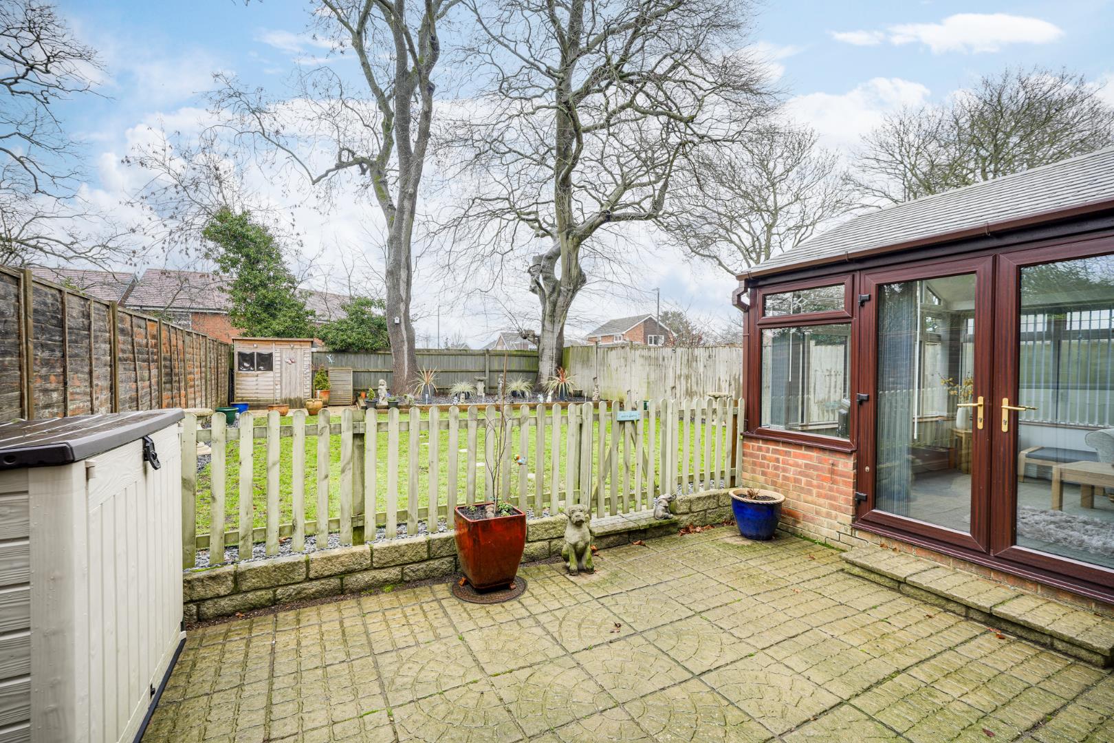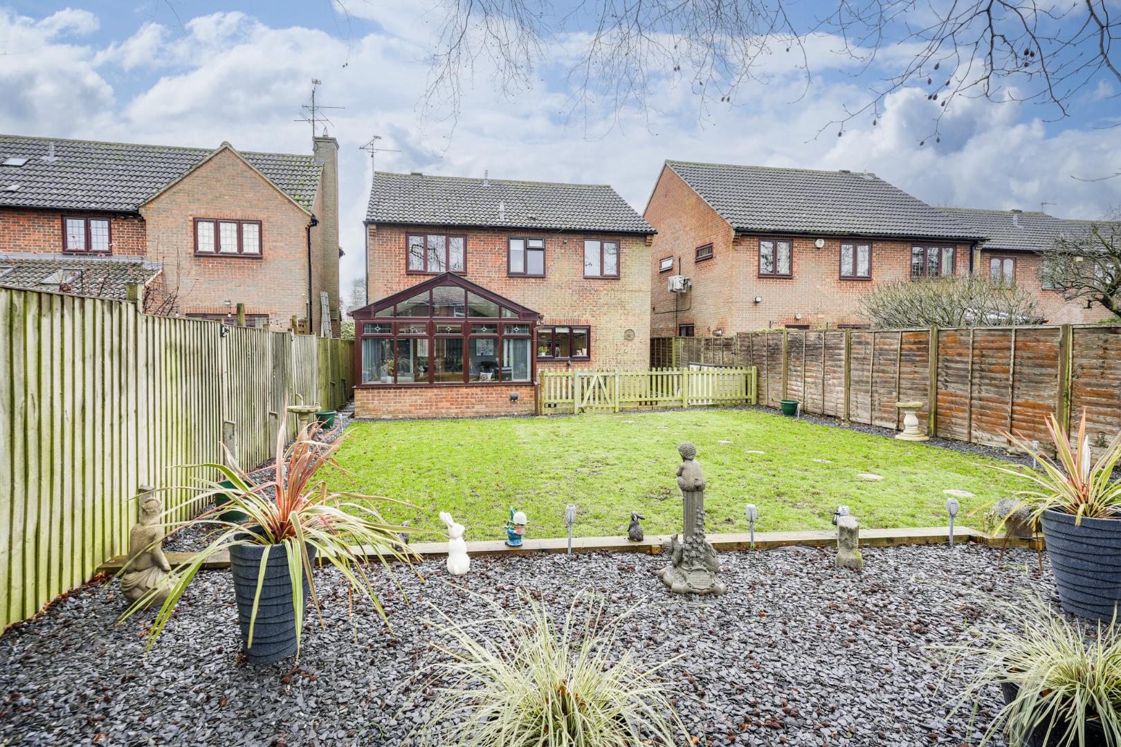 To the front, a driveway extends to the garage and front entrance, providing off-road parking. The remainder has been thoughtfully landscaped to create an attractive lawned garden, with gated access leading to the rear. The rear garden is particularly well proportioned and beautifully maintained, featuring a paved patio area ideal for outdoor dining, a generous lawn and neatly arranged planted beds. It offers a private and versatile space to be enjoyed throughout the seasons.