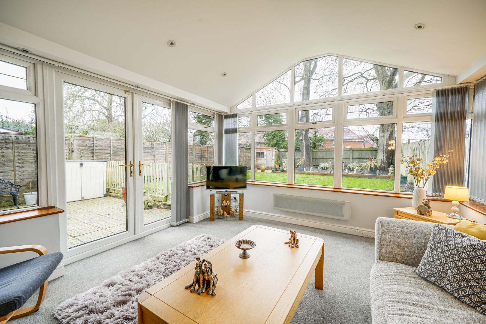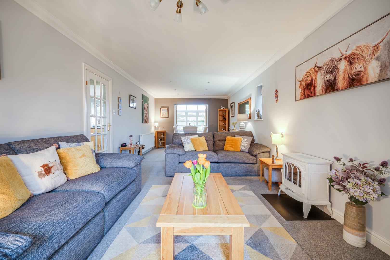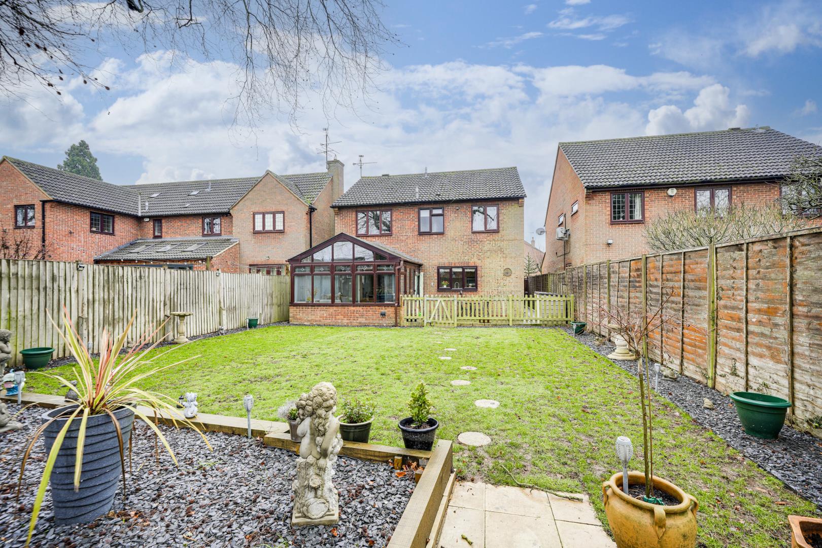 To the front, a driveway extends to the garage and front entrance, providing off-road parking. The remainder has been thoughtfully landscaped to create an attractive lawned garden, with gated access leading to the rear. The rear garden is particularly well proportioned and beautifully maintained, featuring a paved patio area ideal for outdoor dining, a generous lawn and neatly arranged planted beds. It offers a private and versatile space to be enjoyed throughout the seasons.
