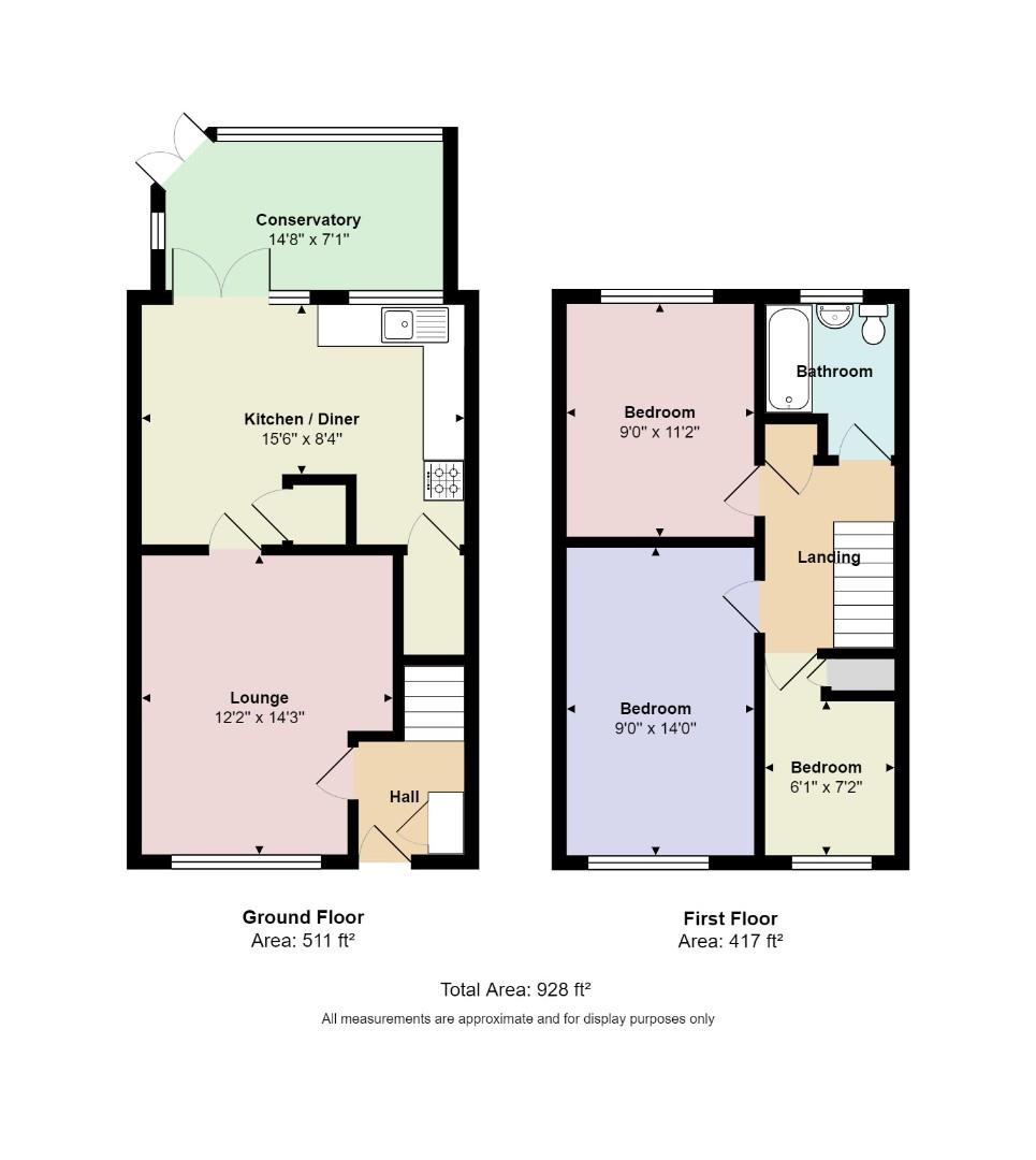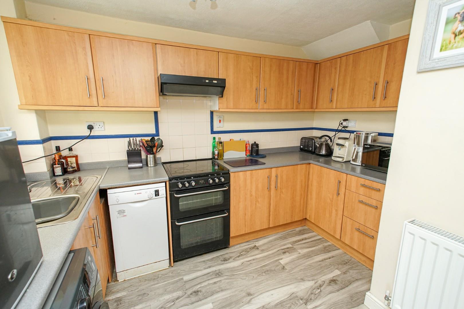Enter via UPVC front door into the entrance hall, there are stairs leading to the first floor and a door to the lounge. The lounge is a bright and spacious room with ample room for a variety of furniture. A door goes through to the kitchen/dining room which has ample space for a family sized dining table. The kitchen has been fitted with a range of wall and base level units and roll edged work surface over, plus there are spaces for appliances. There is also a built in storage cupboard, Doors open into the conservatory, an excellent addition to the home, which is of brick and double glazed construction and features underfloor heating. From here there are pleasant rear views and access to the garden.