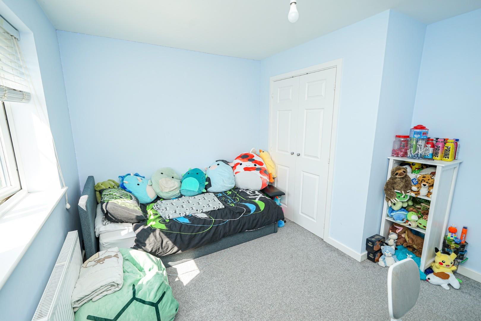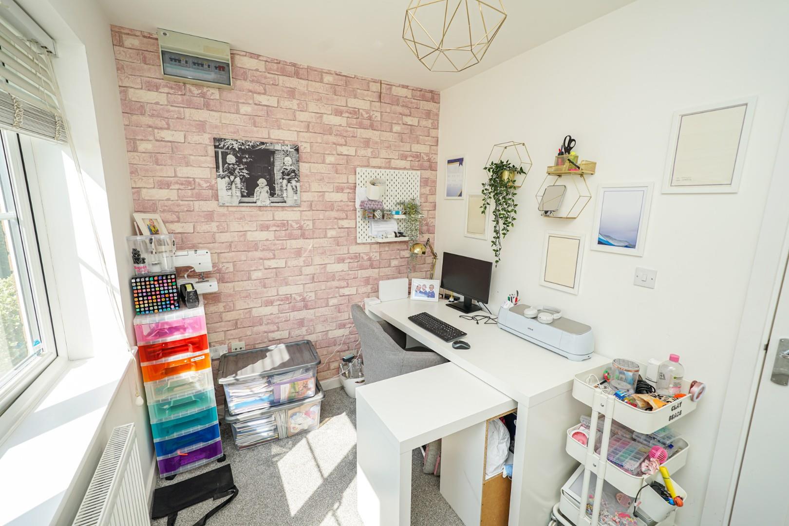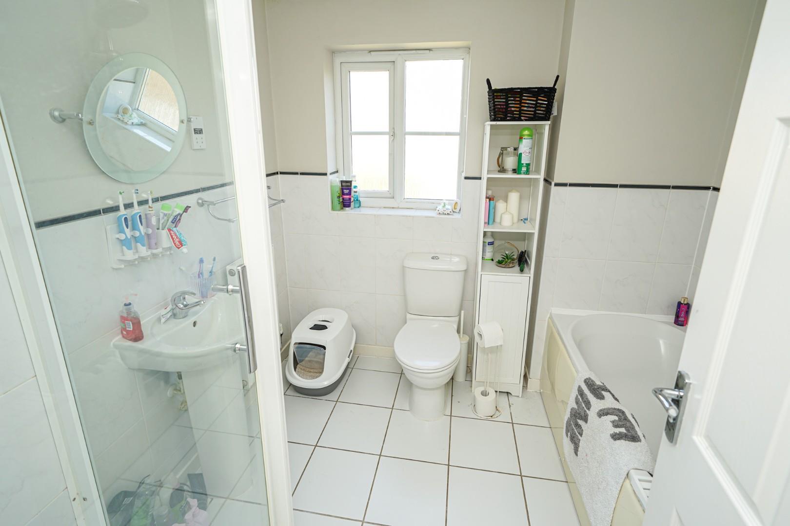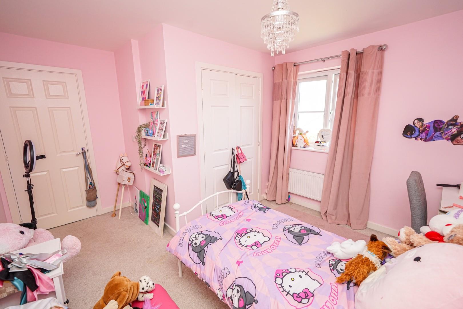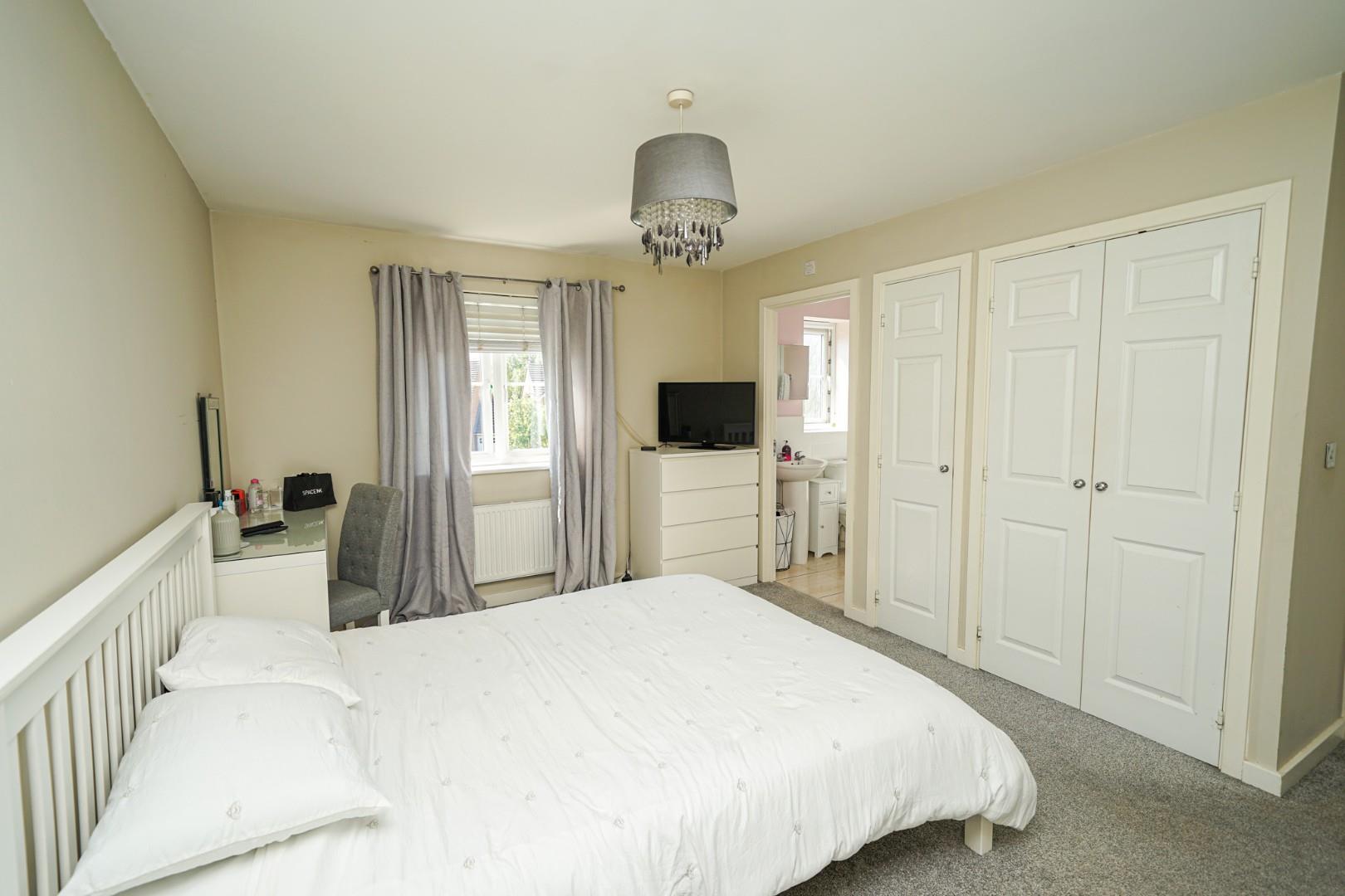 The first floor landing features a built-in airing cupboard and loft access, with doors leading to four well-proportioned double bedrooms. The master bedroom is a spacious and peaceful retreat, complete with built-in wardrobes and a private ensuite shower room. Bedroom three also benefits from fitted wardrobes, while all bedrooms are light, airy and comfortably sized, suitable for family members, guests, or additional work-from-home needs. A modern family bathroom serves the remaining bedrooms with a well-appointed suite.