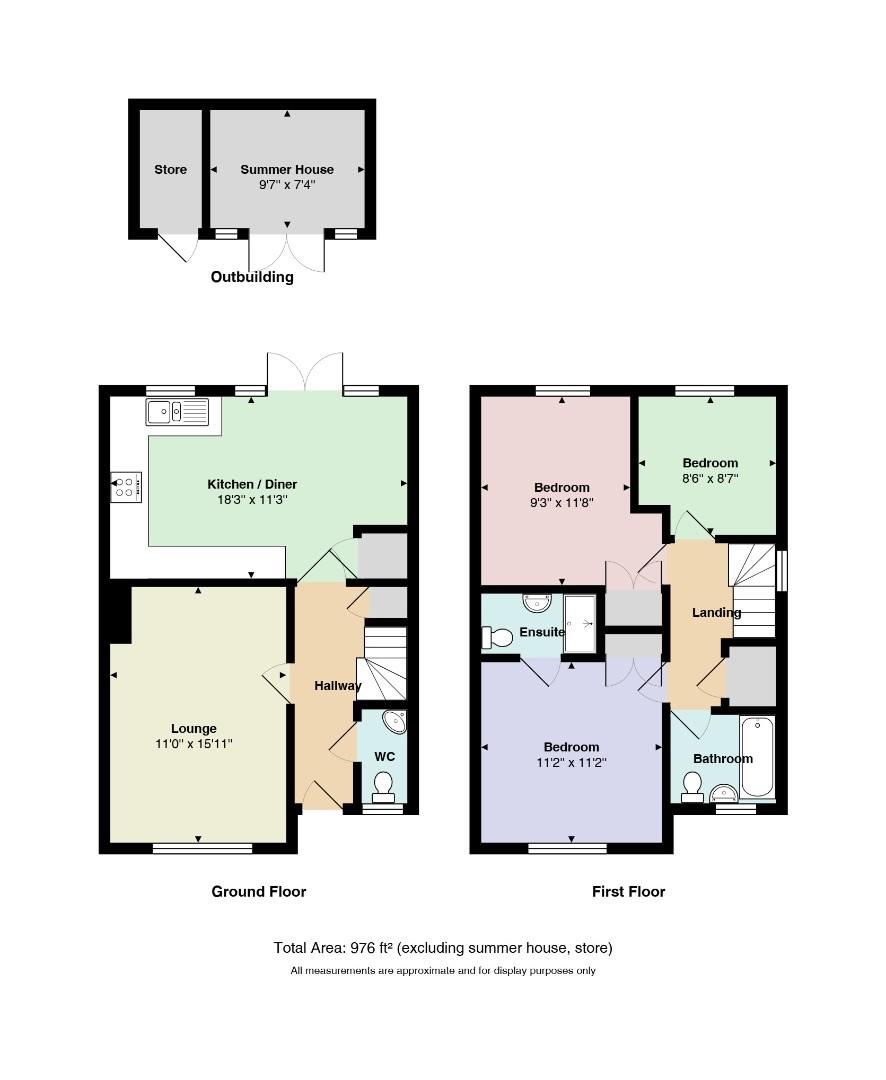To the front of the property is a neat frontage with pathway leading to the front door and parking for two vehicles. The landscaped rear garden has been thoughtfully arranged for ease of maintenance and enjoyment, featuring a paved patio area positioned directly off the kitchen/dining room, an artificial lawn and well defined borders. Positioned at the rear of the garden is a summer house with an adjoining store, offering excellent potential for a variety of uses including a home office, hobby room or entertaining space, subject to requirements.