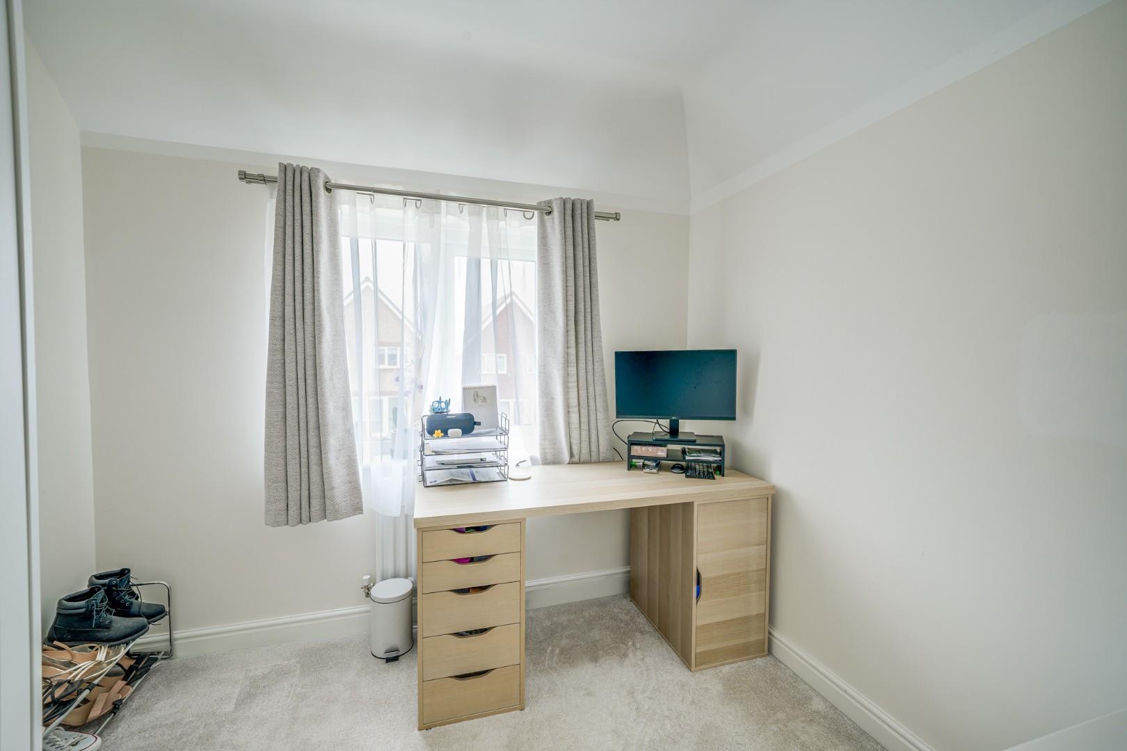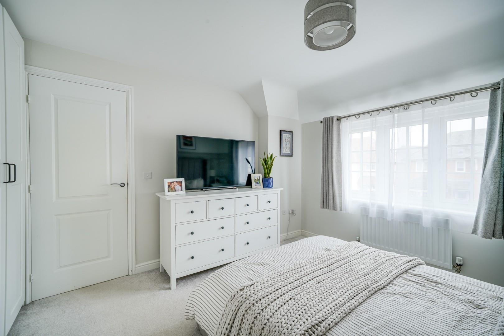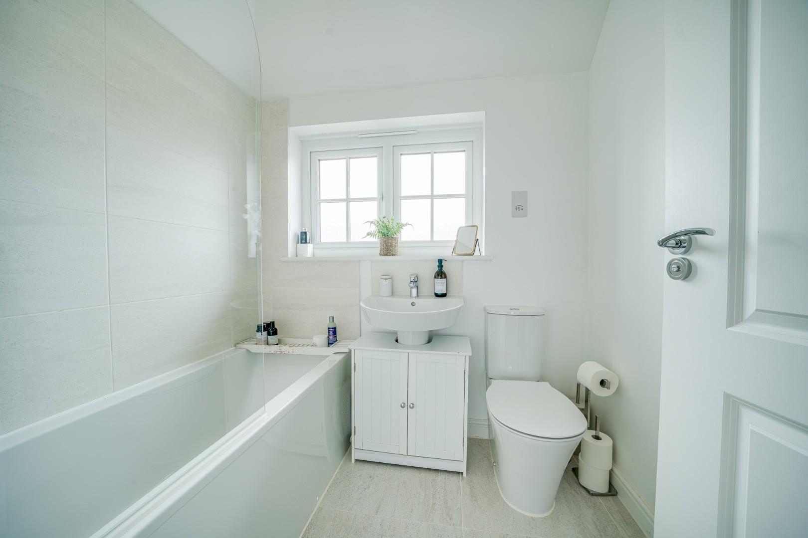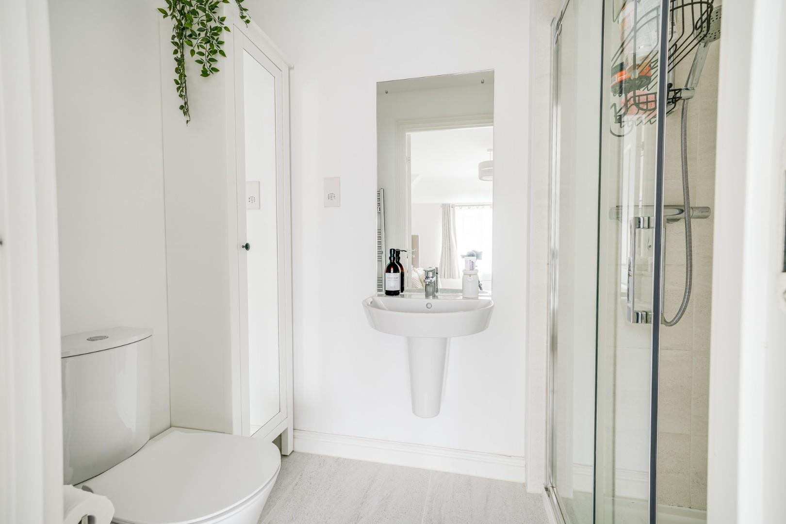The first floor landing provides access to all three bedrooms, the family bathroom and loft space. The master bedroom is a generous double room enjoying a front aspect and benefiting from fitted storage and a modern en-suite shower room comprising low level WC, wash hand basin and shower cubicle. Bedroom two is a further well proportioned double room overlooking the rear garden, while bedroom three is an excellent sized single room, equally suitable as a nursery or home office. The family bathroom is fitted with a contemporary three piece suite comprising low level WC, wash hand basin and panel bath with shower over, with tiling to water sensitive areas.
