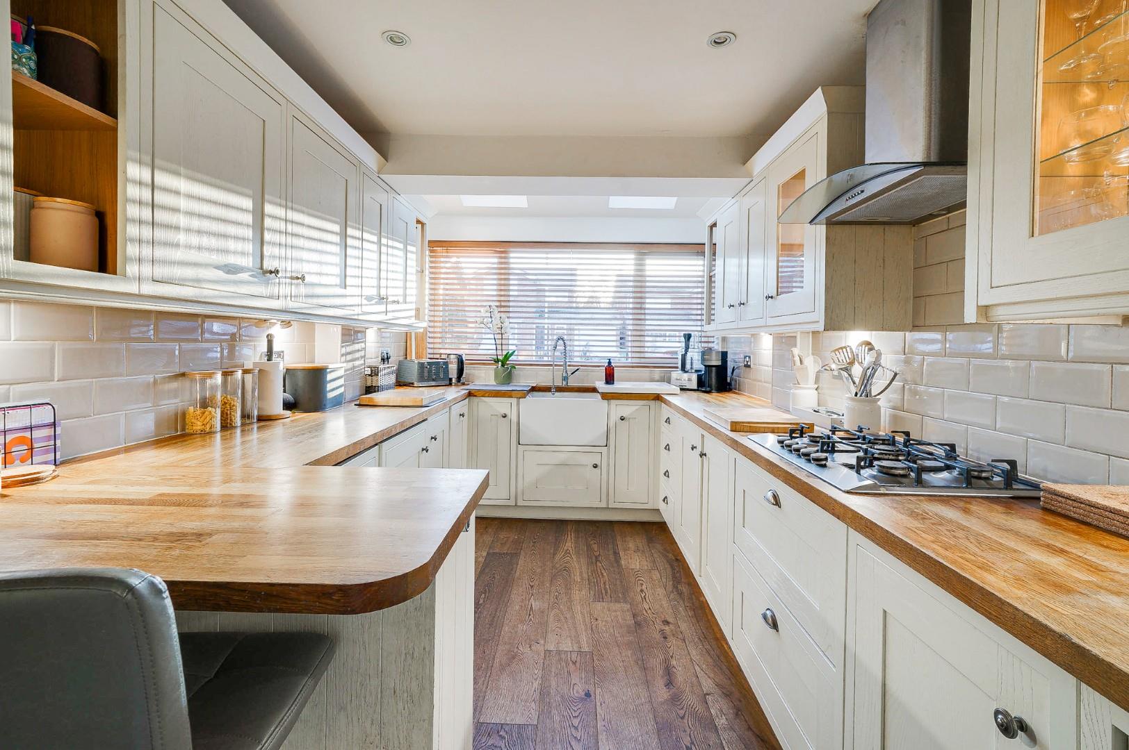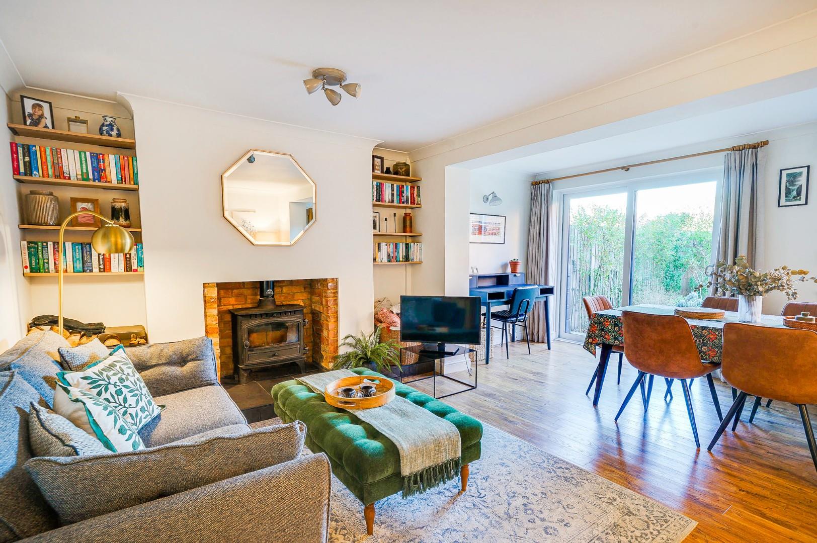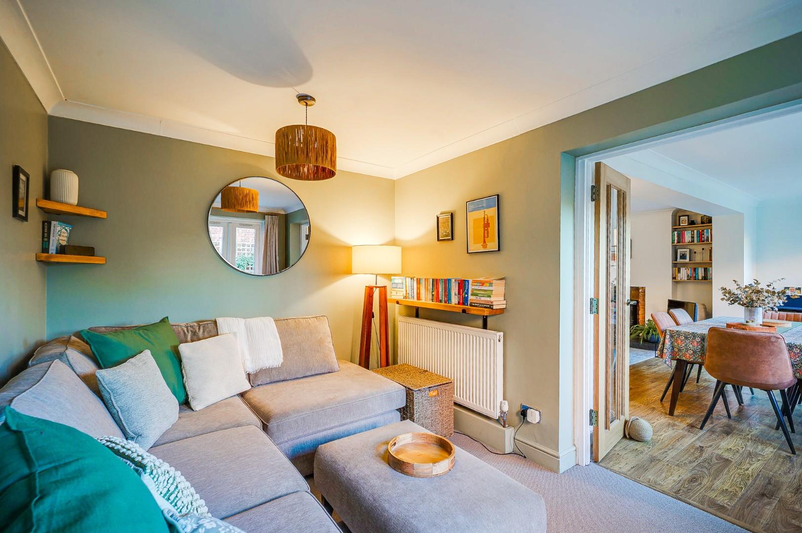 The property is entered via a welcoming entrance hall which sets the tone for the rest of the home and provides access to the principal ground floor rooms. The lounge/dining room is a light-filled, dual aspect space, comfortably accommodating a variety of seating and dining arrangements, with sliding doors opening directly onto the rear garden. A second reception room sits alongside, offering excellent flexibility and lending itself equally well as a snug, home office or family room, with French doors providing further garden access.