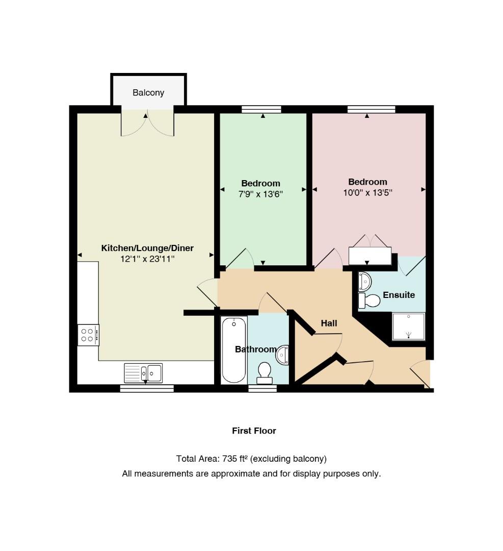 Enter via front door into a spacious hallway with doors to both bedrooms, bathroom, lounge/kitchen/diner and access to two roomy storage cupboards. The master bedroom sits to the front aspect and is a generous space with a good sized fitted wardrobe. An ensuite is conveniently located just off the room and comprises of a low level WC, wash basin and shower cubicle. A further double bedroom provides plenty of space for various furniture to suit all needs. The bright and airy bathroom sits to the rear and comprises of a low level WC, wash hand basin and panel bath with shower over. A heated towel rail completes the room. The open plan kitchen/diner/lounge is 23ft and has the added benefit of a balcony. The good sized kitchen/diner includes an integrated fridge/freezer, oven and hob with hood over plus there are spaces for a washing machine and tumble dryer. There are a range of wall and base level units with ample work surface. The lounge is light and airy and pleasant canal views can be enjoyed from the balcony.