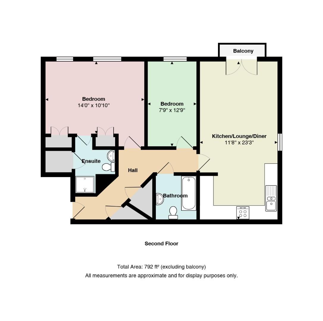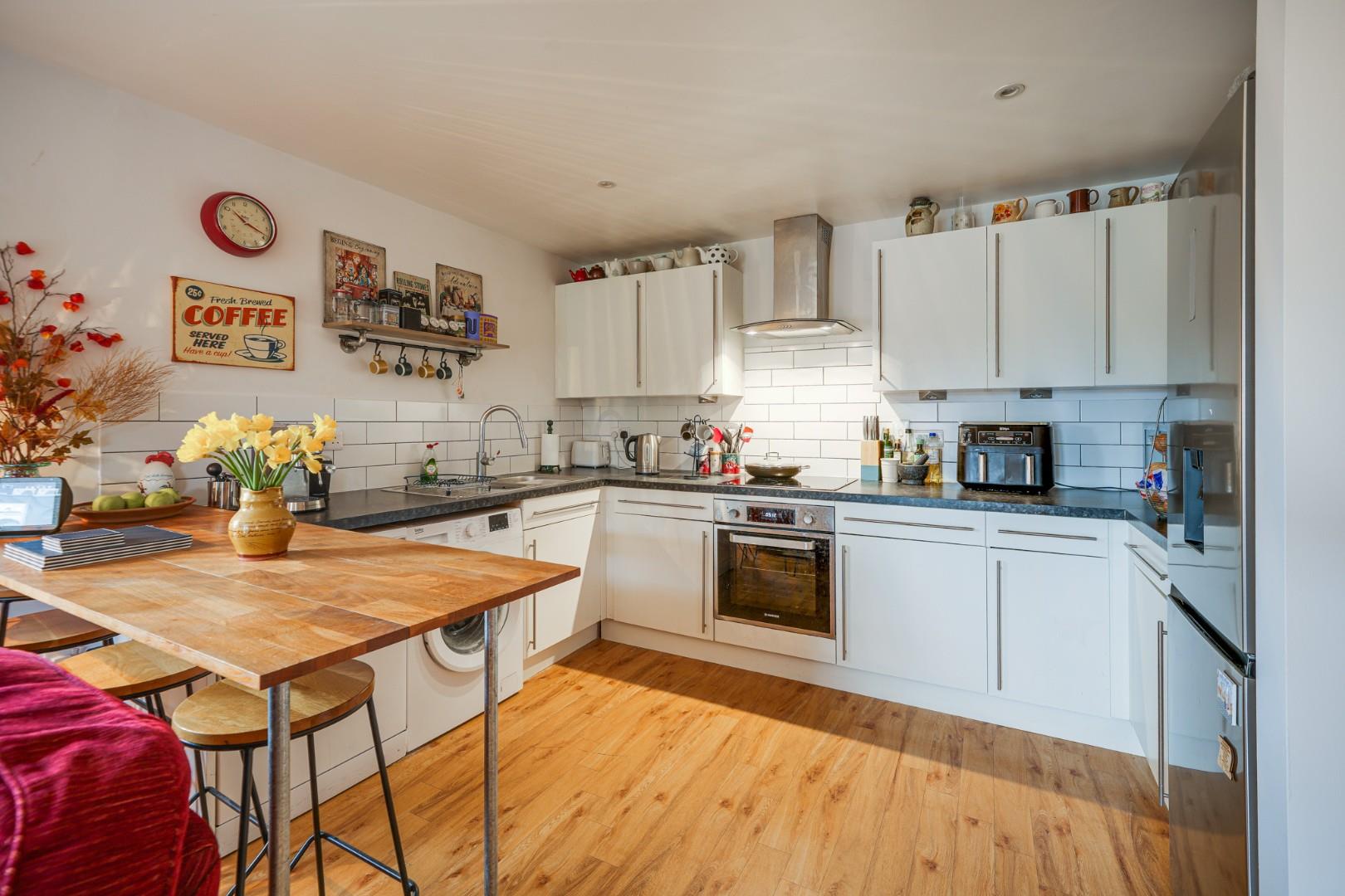The apartment is accessed via a secure communal entrance. Once inside, a private entrance hall leads through to the principal rooms. The heart of the home is a large open-plan kitchen, dining and living room that provides an excellent space for both relaxed daily living and entertaining. Light floods the room through generous windows and double doors opening onto a private balcony, where peaceful views over the canal can be enjoyed - an ideal spot for morning coffee or evening relaxation. The contemporary kitchen is fitted with a range of units and integrated appliances, designed to maximise both storage and work surface space, while the open plan layout ensures sociability when entertaining guests or unwinding at the end of the day. The master bedroom is a particularly impressive feature, being larger than typically found within the development and thoughtfully designed with built-in wardrobes and a well-equipped ensuite shower room. A built-in storage cupboard in the ensuite adds further practicality, ensuring excellent organisation within this private suite. The second bedroom is also a comfortable double room, well suited to everyday family use, guest accommodation or as a home office space if required. A separate bathroom completes the accommodation, fitted with modern sanitary ware and tiling.