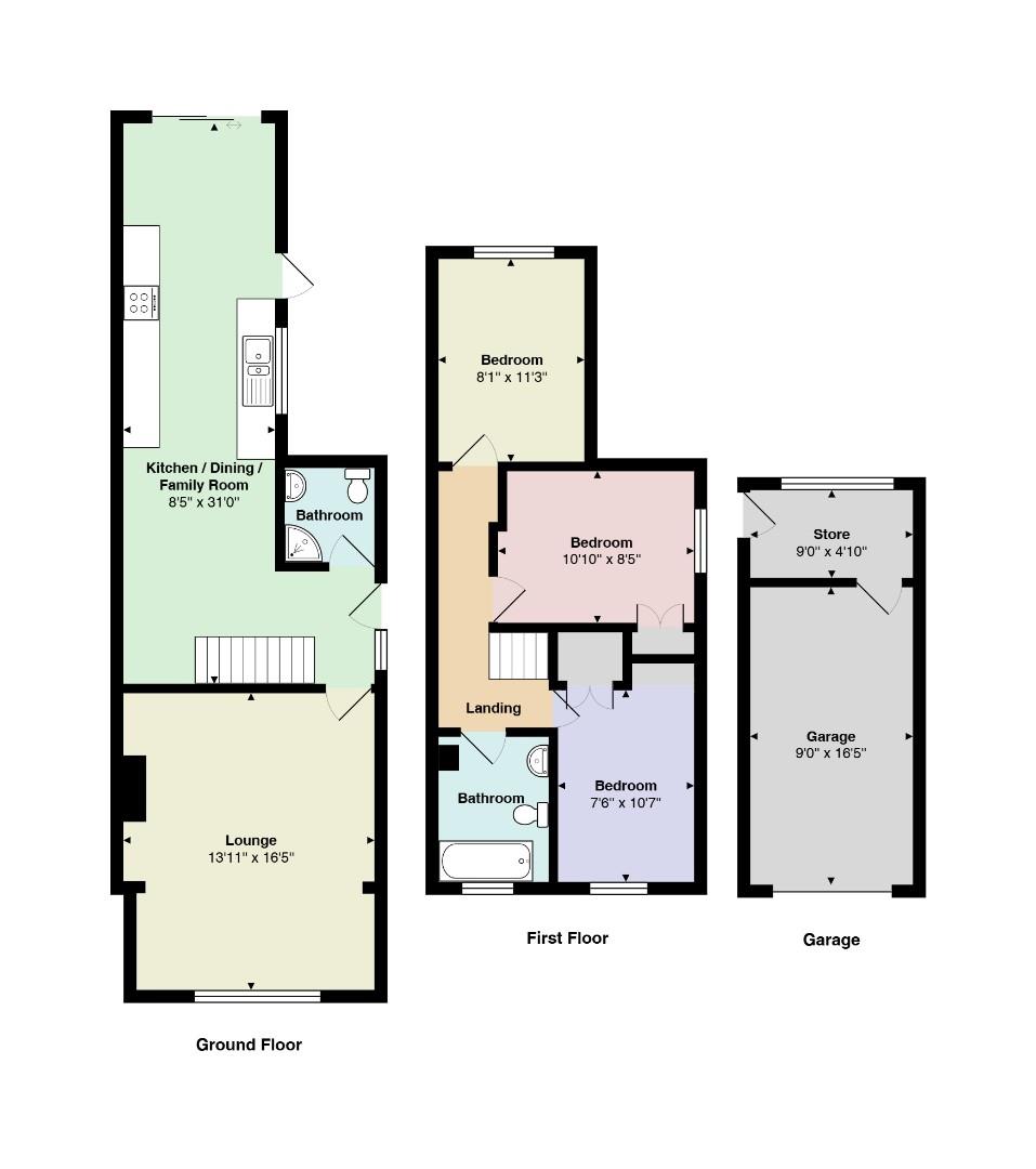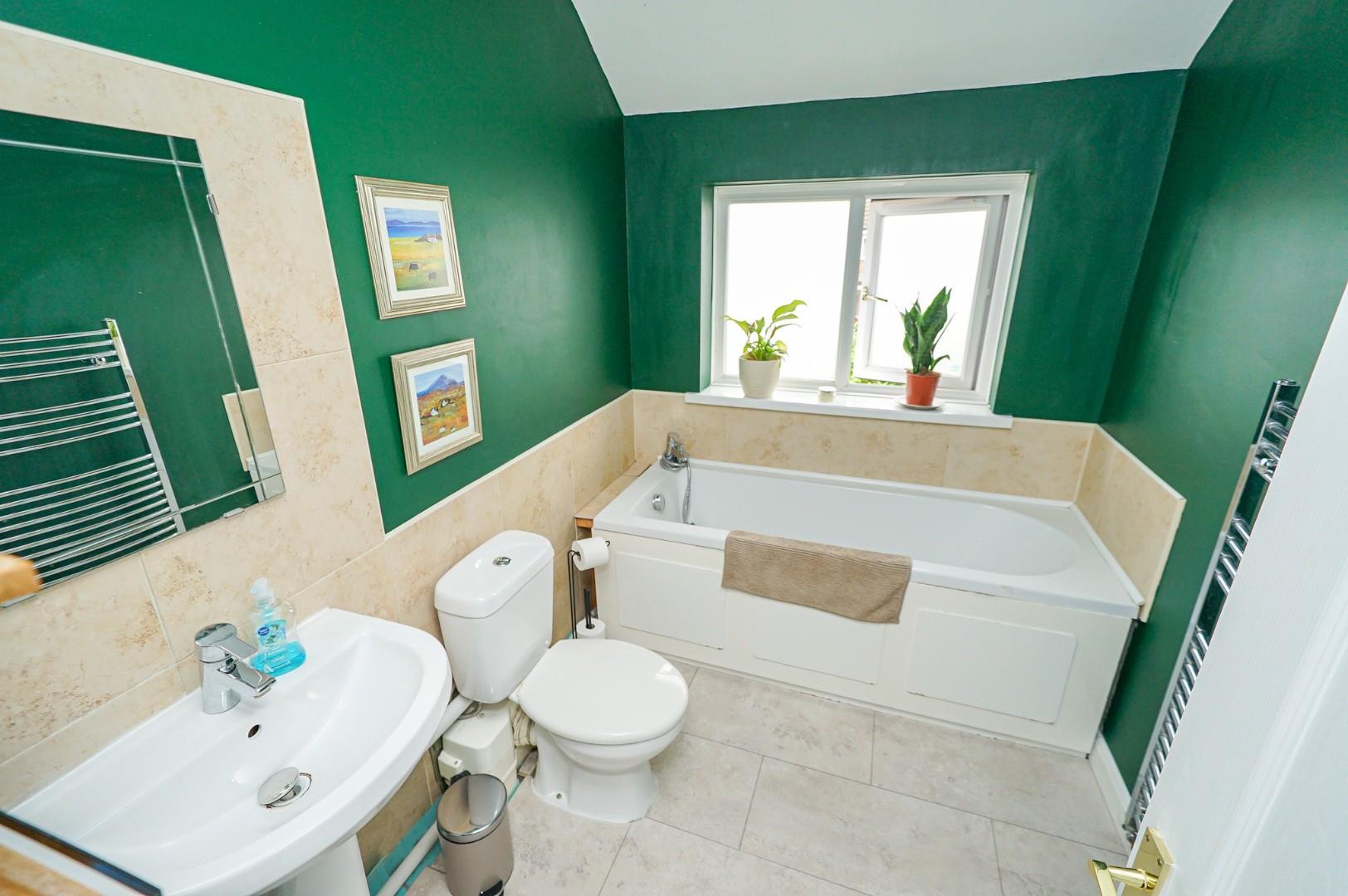 The first floor landing gives access to three bedrooms and the family bathroom. There are three well-proportioned bedrooms making this an excellent choice for growing families. The family bathroom is fitted with a three piece suite including a low level WC, pedestal wash hand basin and panel bath.