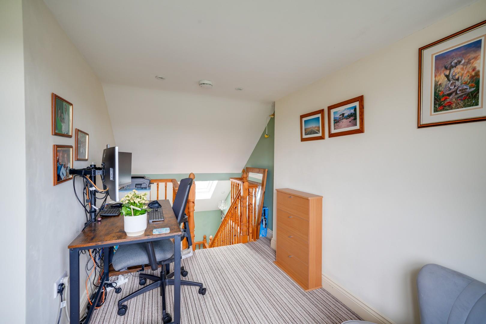 The thoughtfully designed loft conversion adds significant living space. Stairs lead to a spacious open landing area currently utilized as office space. A light and airy double bedroom with dual aspect windows, makes an ideal master bedroom or additional guest bedroom. An added benefit is a fitted ensuite which features a three-piece suite with shower, vanity wash hand basin and low-level WC.