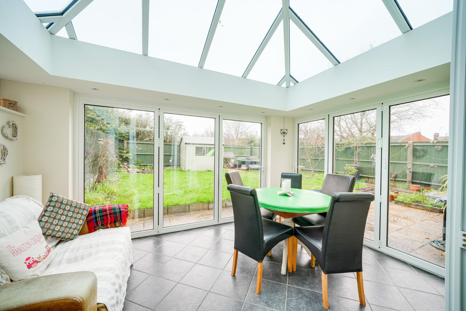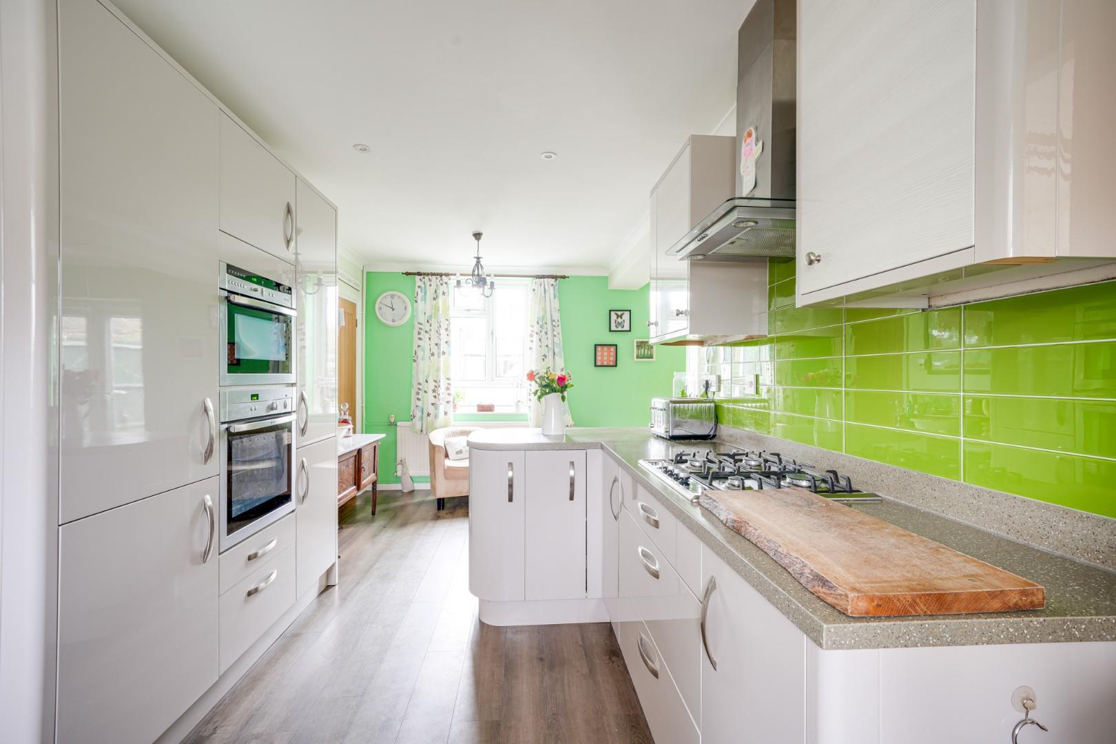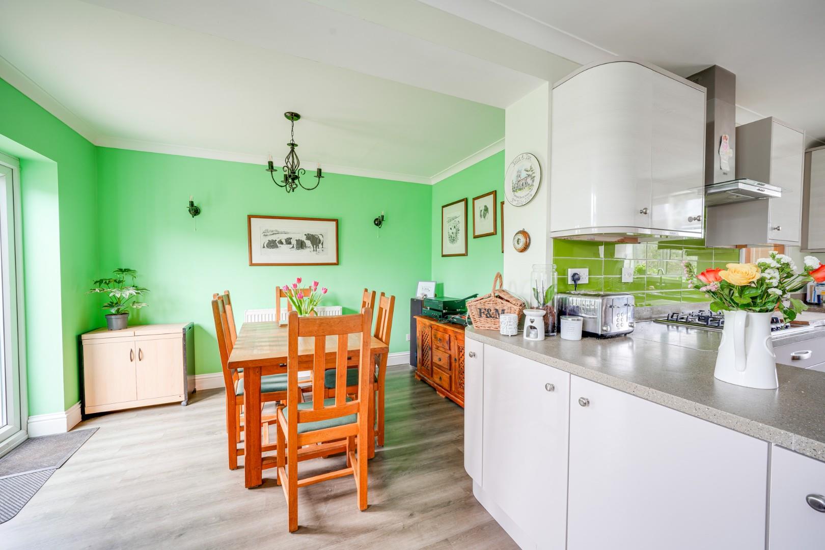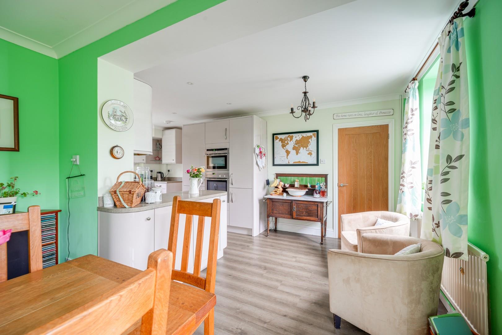 The kitchen/diner offers excellent family space with room for a generous dining table. The kitchen is fitted with integrated appliances including dishwasher, full-length fridge, hob and oven. Patio doors from the dining area provide additional garden access.