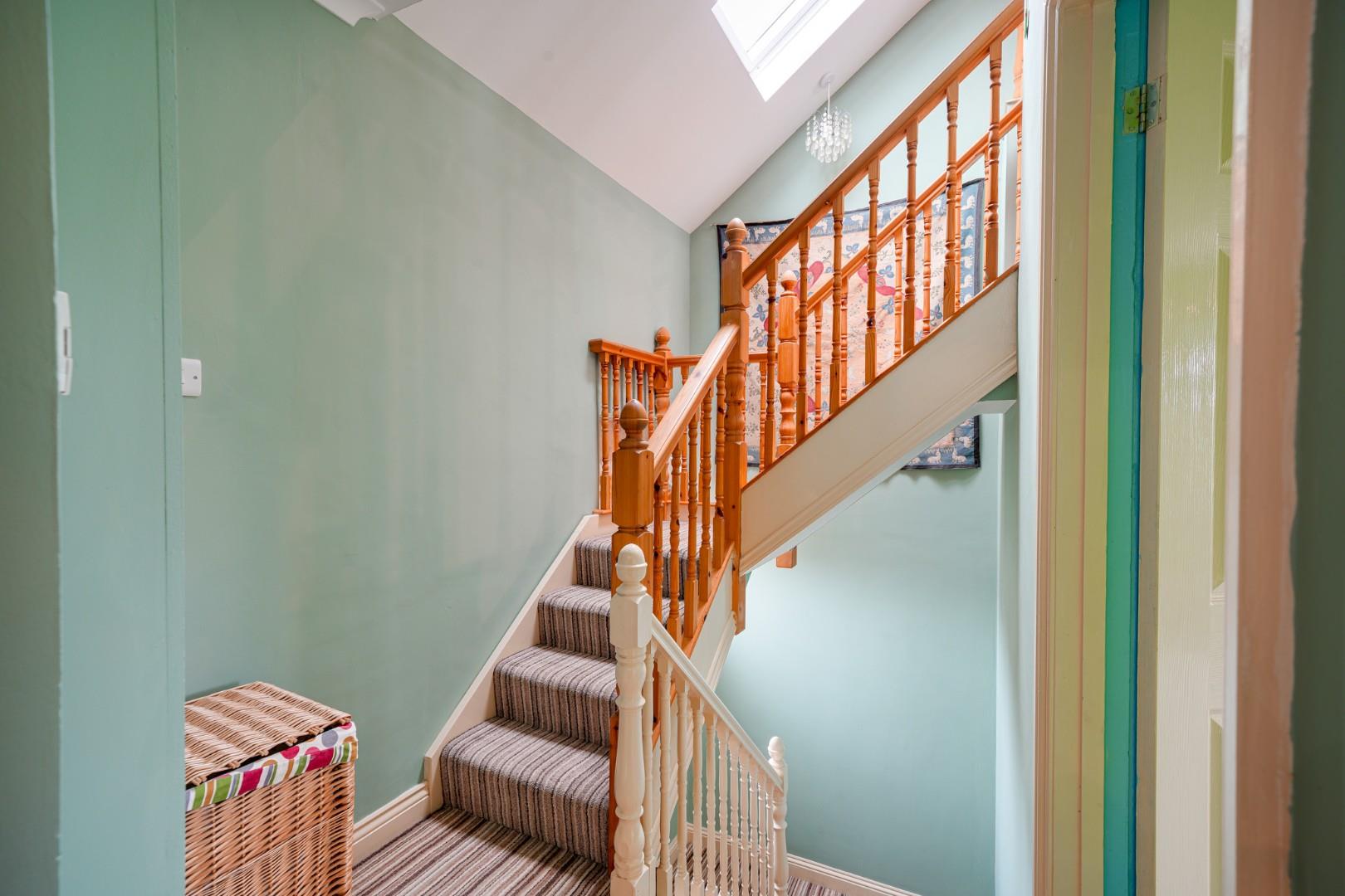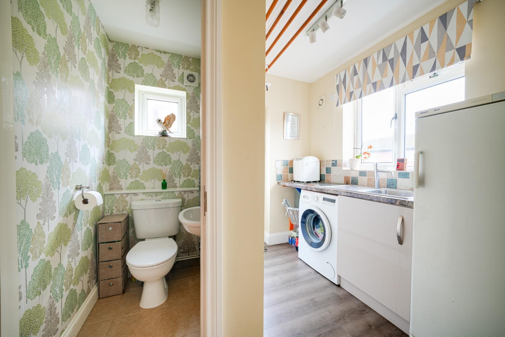 A separate utility room, accessed from the kitchen, provides space for white goods and features a side door to the garden. Completing the ground floor accommodation is a downstairs WC with low-level WC and wash hand basin, plus useful under-stairs storage.