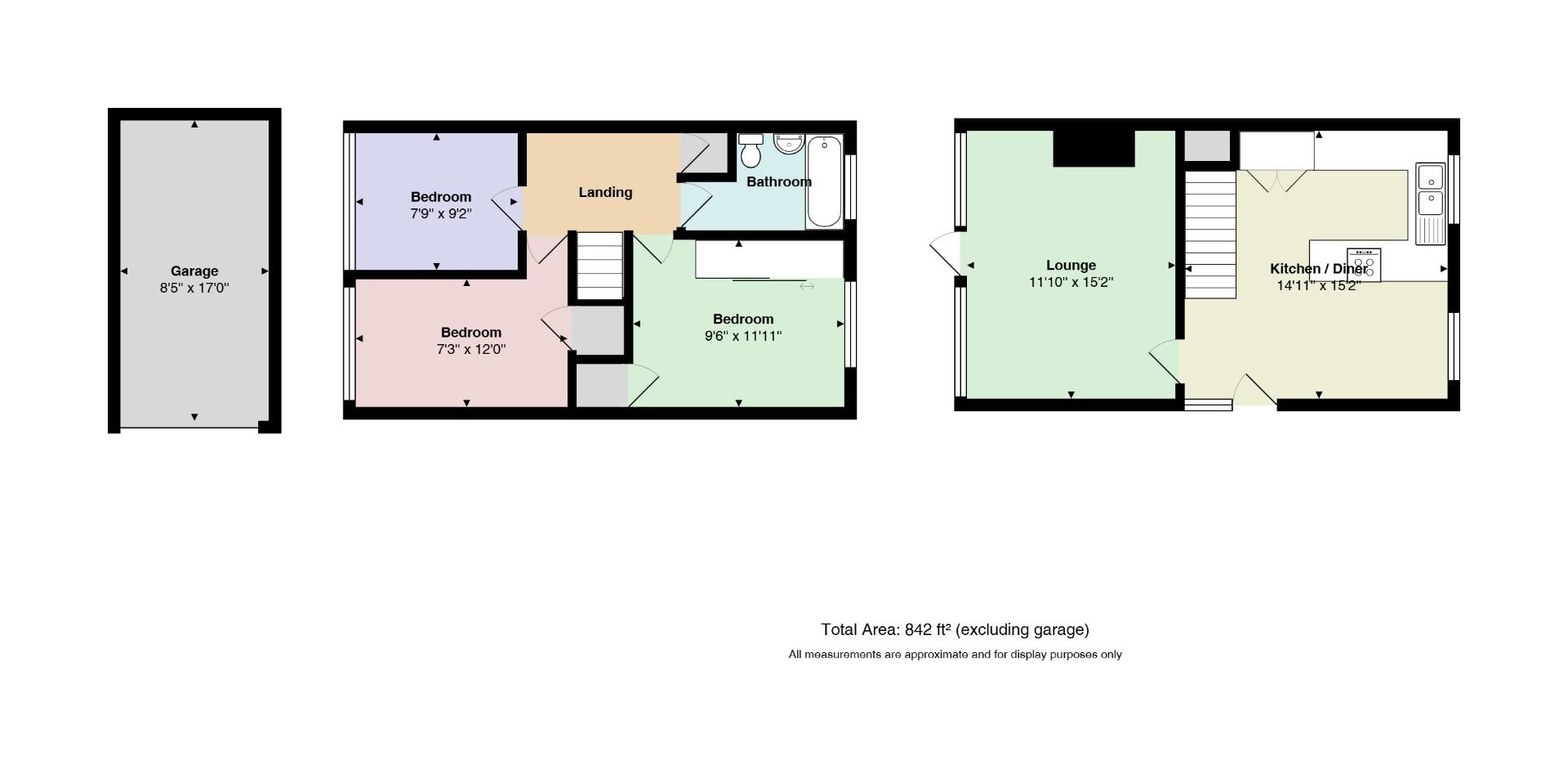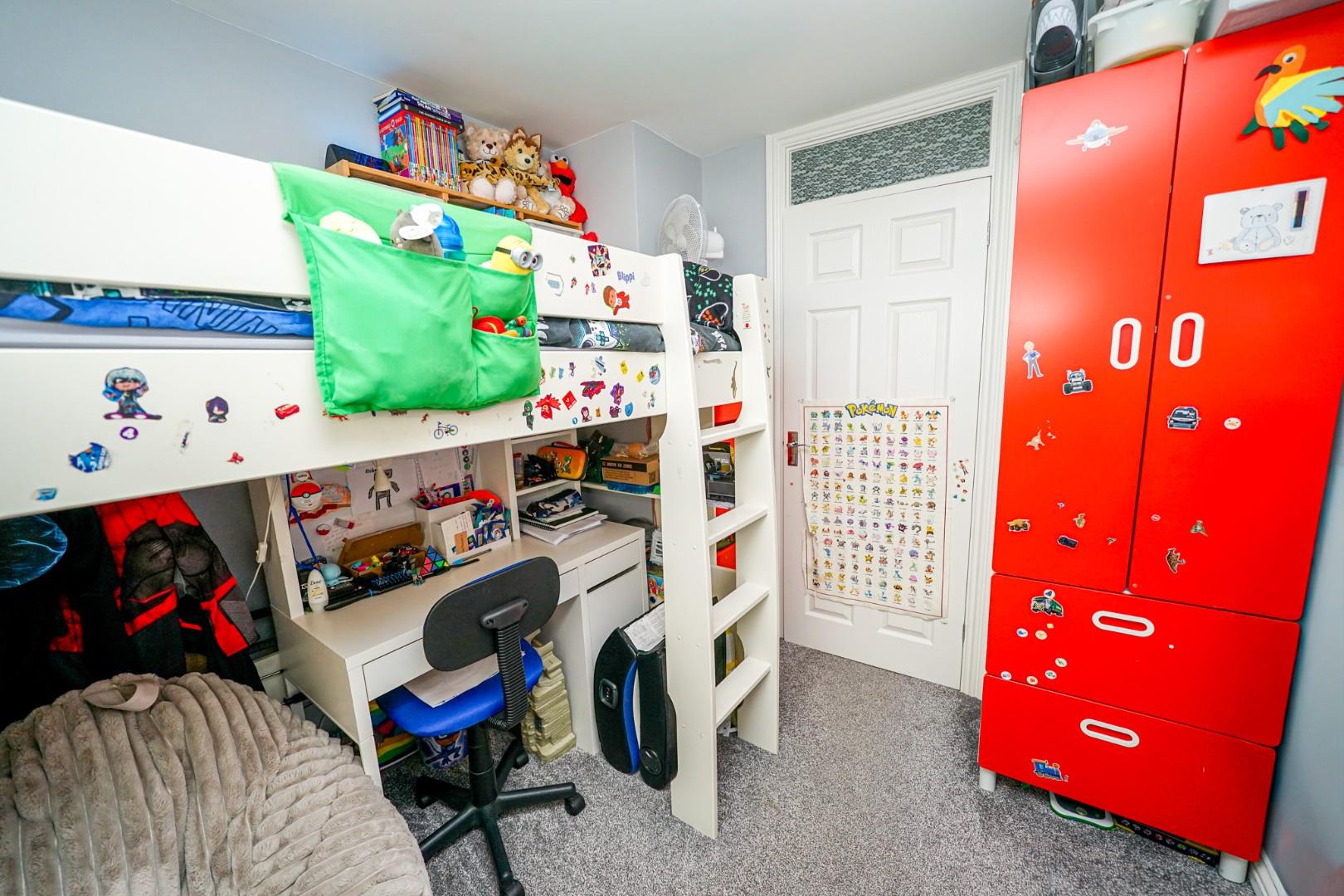 The landing provides access to three well-proportioned bedrooms. The master bedroom is a comfortable double with a front aspect with both a fitted wardrobe and cupboard, while the second double bedroom overlooks the rear garden. The third bedroom is a versatile single, ideal as a child’s room, study or dressing room. All are served by a family bathroom fitted with a three piece suite and shower over the bath.