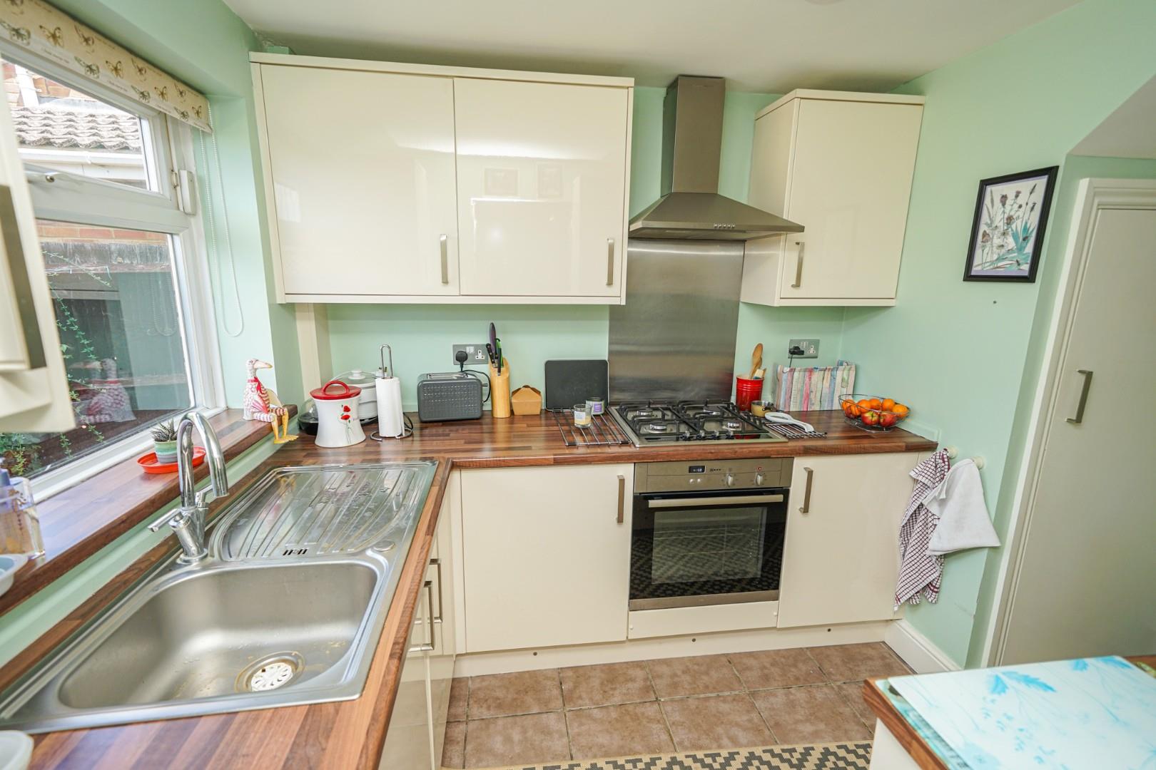 Enter via the front door into a spacious hallway which provides access to the lounge and first floor via the stairs. The generous lounge is situated to the front with an abundance of light streaming through. A range of furniture can easily be arranged and there is a built-in cupboard under the stairs which provides excellent storage. A dining room sits to the rear with double glazed sliding doors providing access to the garden. The kitchen has been fitted with a modern range of wall and base level units with ample roll edged work surface. A larder cupboard sits to one corner and provides further space for an under counter appliance.