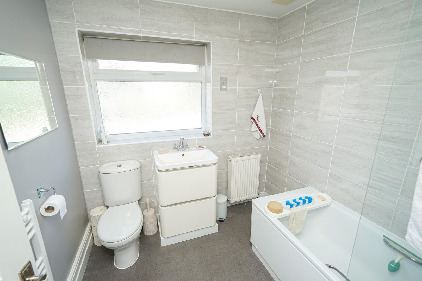 The first floor landing provides access to all three bedrooms and the family bathroom as well as the loft. There are two double bedrooms plus a further generous single bedroom/study with a good sized built-in wardrobe. Each room comfortably accommodates a variety of furniture to suit all needs. The family bathroom has been refitted with a three piece suite comprising of a low level WC, vanity wash hand basin and panel bath with shower over, with the room finished nicely with complimentary tiling.